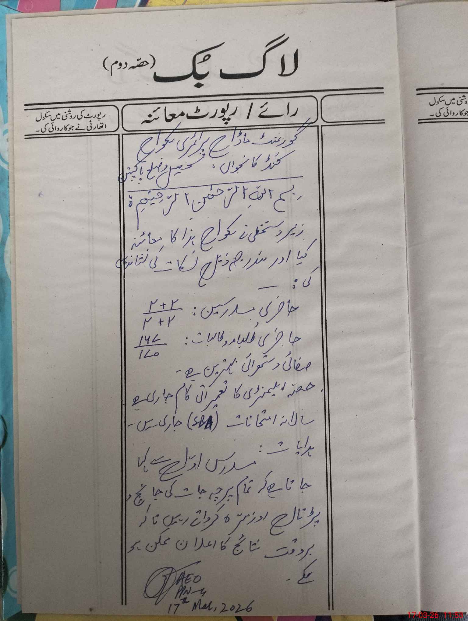 | Certified that this School was Inspected by the Undersigned MEA/DMO Today and the Information Stated Above is as Per Record. | |||||