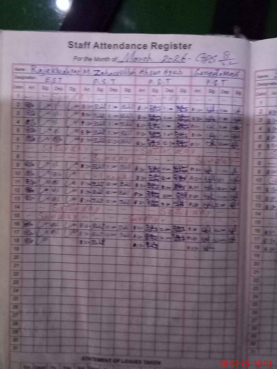 | Leave | Duty | Absent | Maternity | Medical | Ex- Pak |