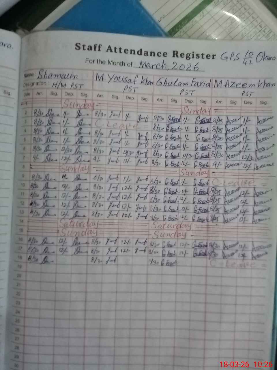 | Name: SH**** Designation: (School Headmaster's/Headmistress's) PST Phone/Cell Number: 03**** |