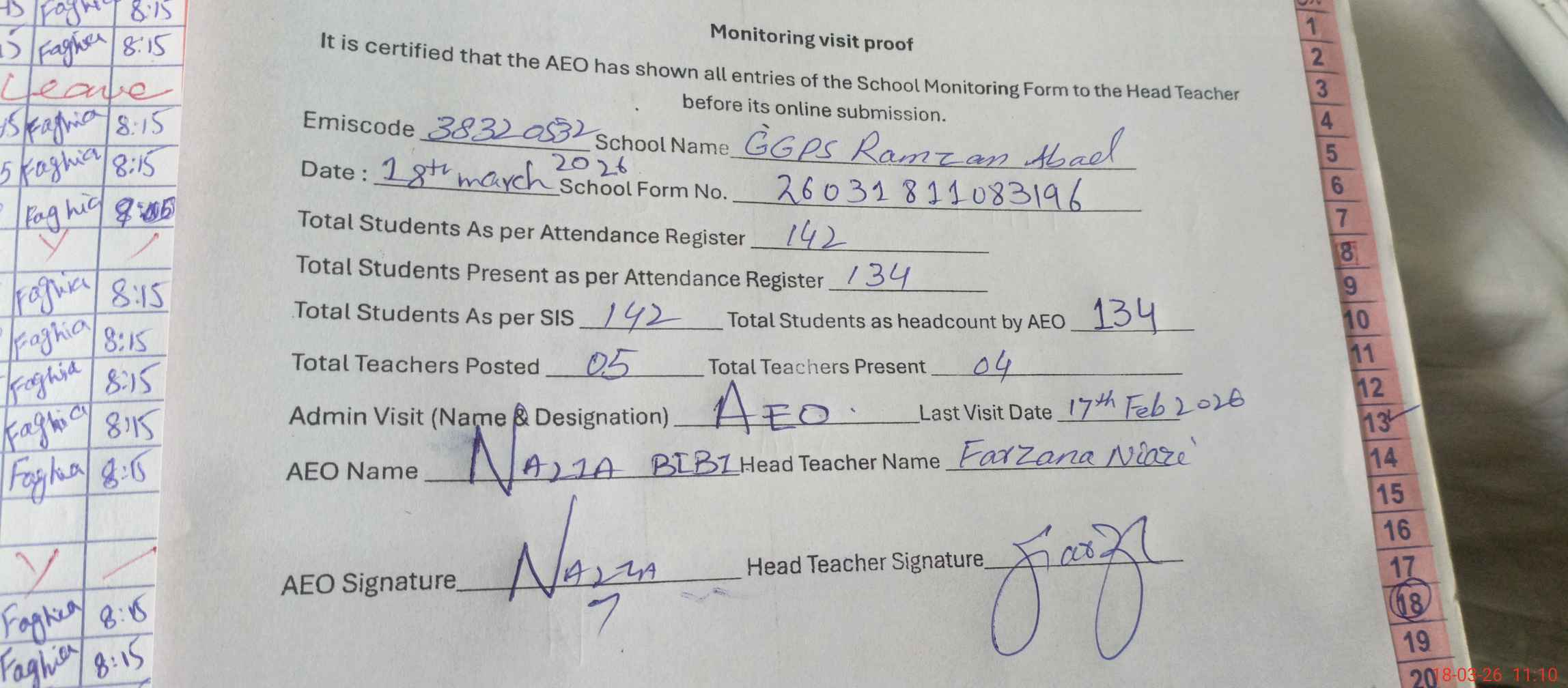 | EMIS Code: 38320532 | Name of School: GGPS RAMZAN ABAD | |||