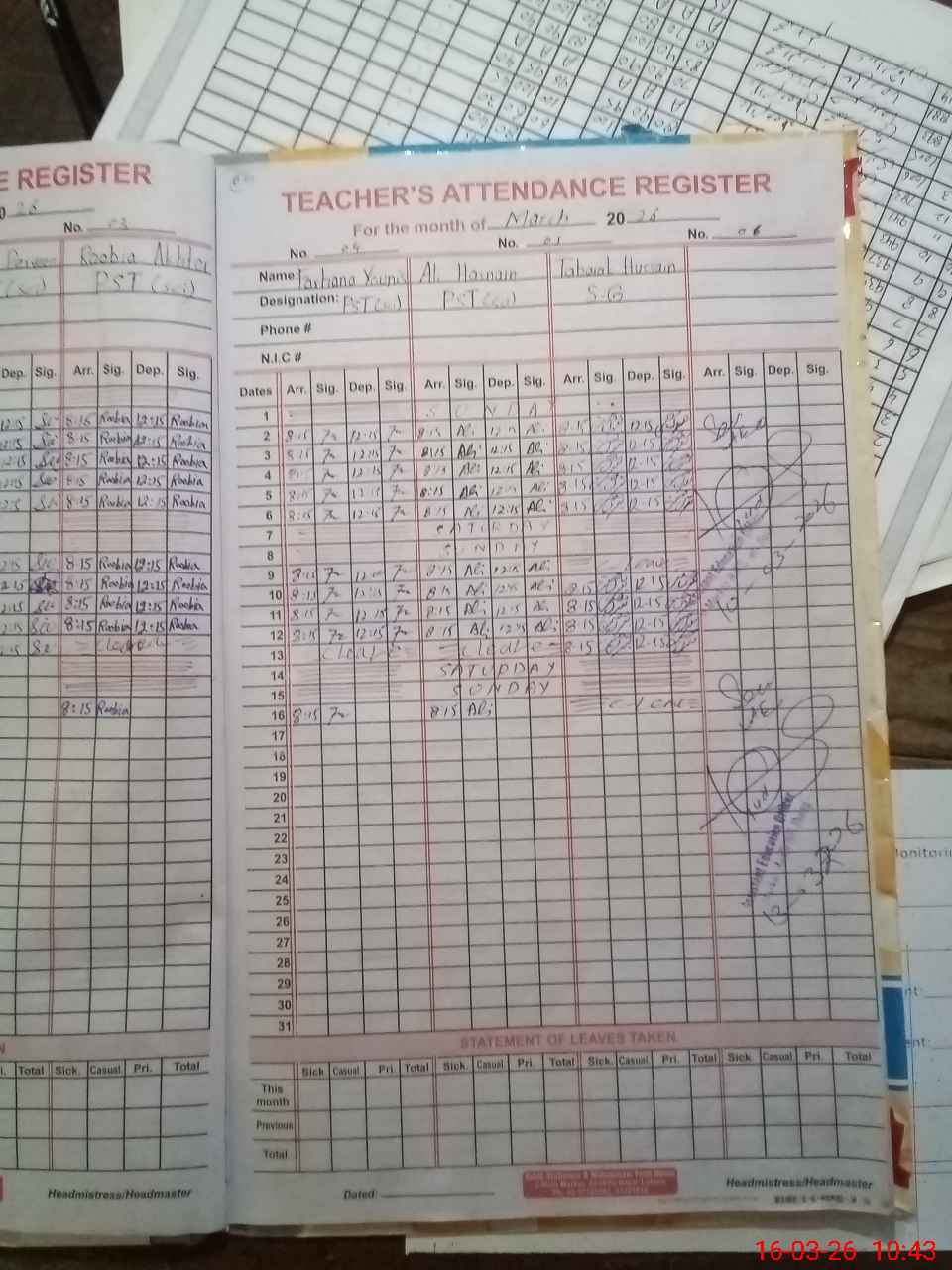 | Name: NA**** KH**** YA**** Designation: (School Headmaster's/Headmistress's) PST Phone/Cell Number: 03**** |