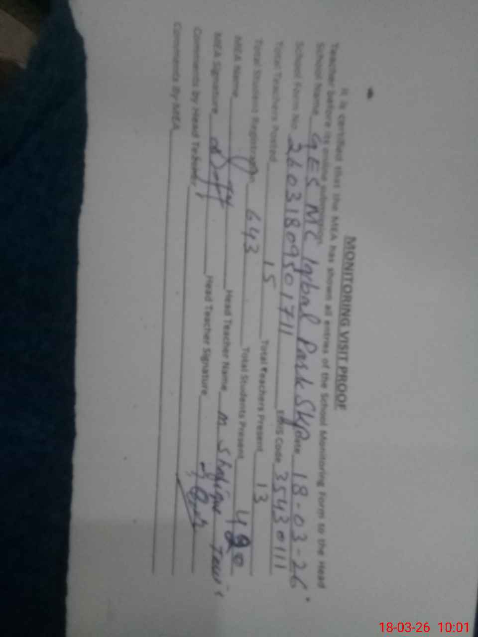 | Name: Mu**** Sh**** Ta**** Designation: (School Headmaster's/Headmistress's) SST Sci Phone/Cell Number: 03**** |