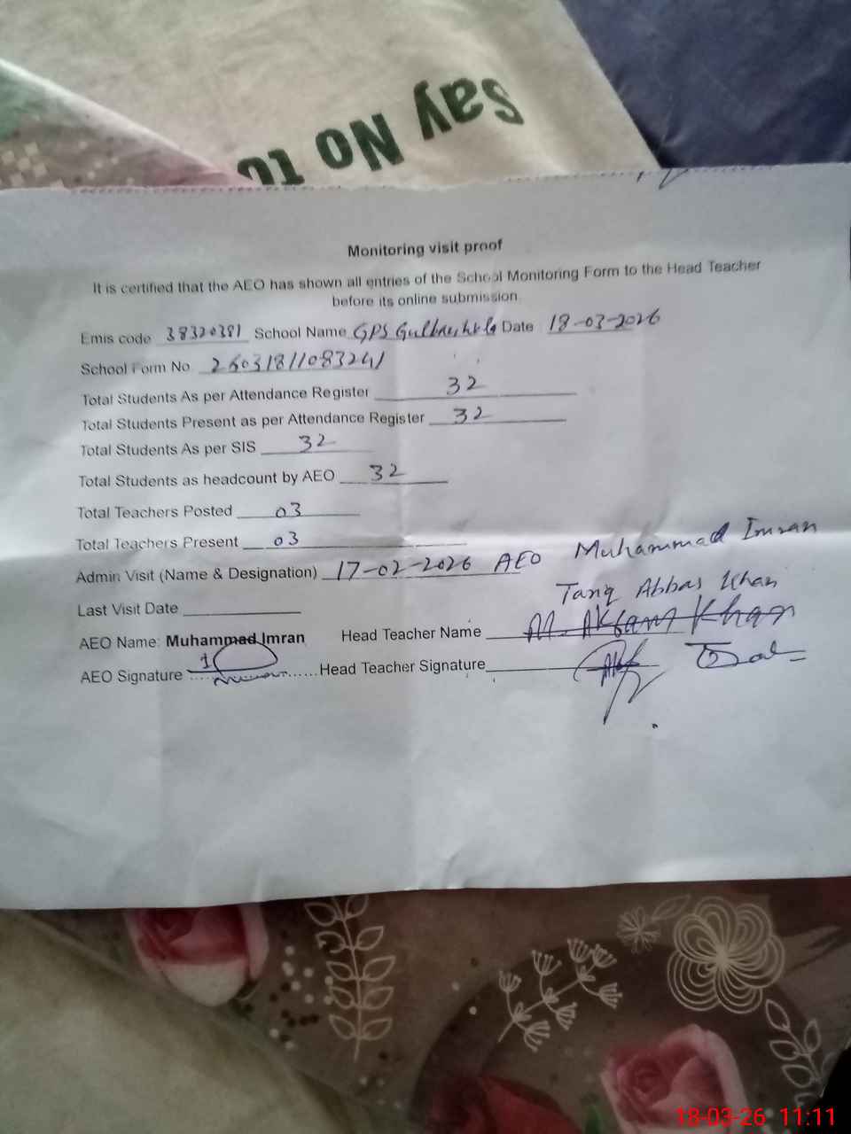 | EMIS Code: 38320381 | Name of School: GPS GULBAZI WALA | |||