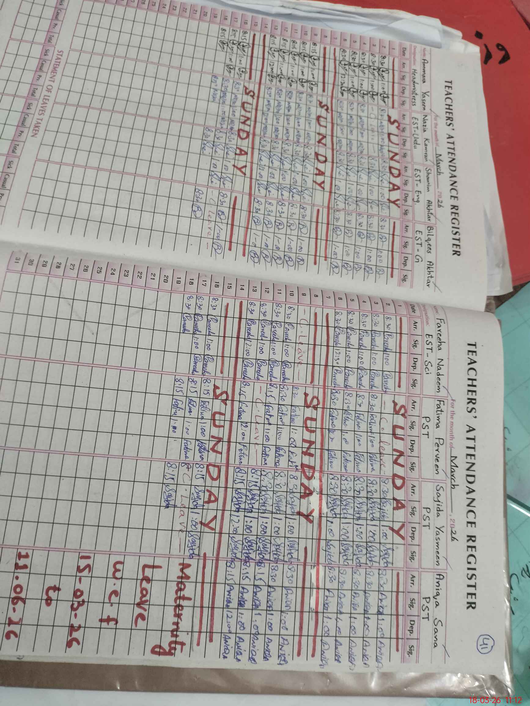 | 36**** | An**** Sa**** | PST Science/Maths | Regular | 0 | 0 | 0 | 0 | 0 | 0 | 0 | 0 | 0 | Maternity |