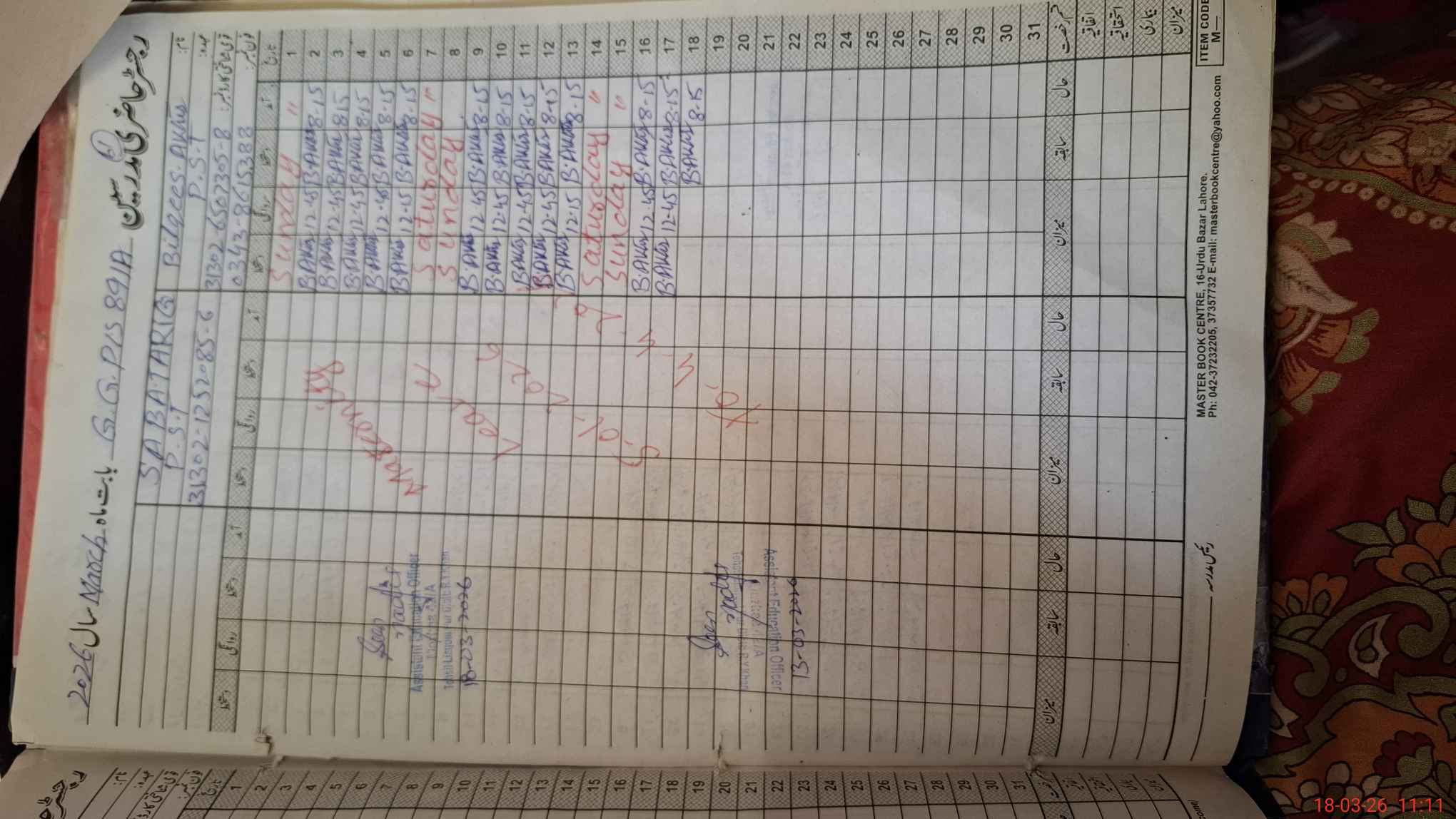 | 31**** | Sa**** Ta**** | PST Arts | Regular | 0 | 0 | 0 | 0 | 0 | 0 | 0 | 0 | 0 | Maternity |