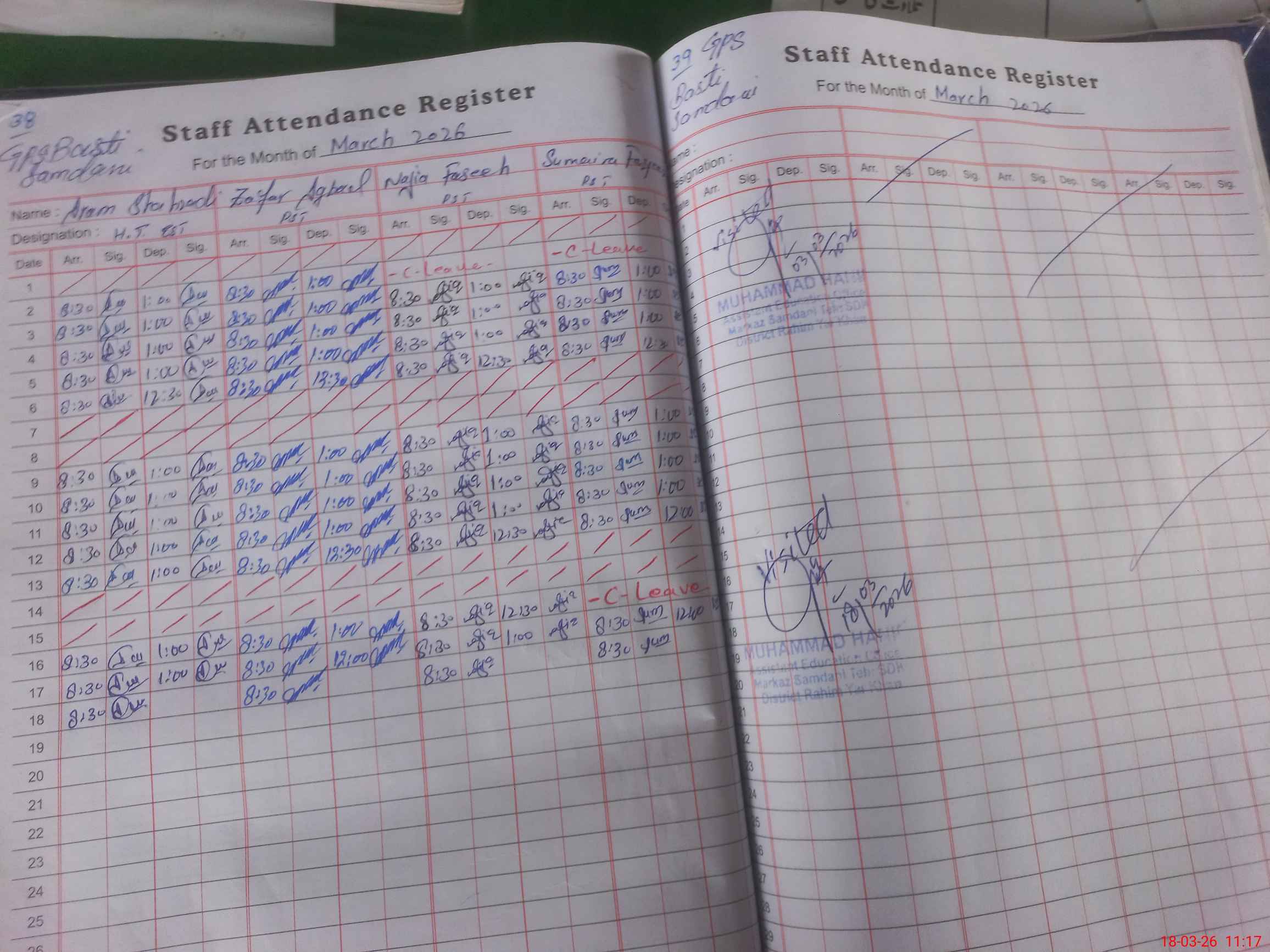 | CNIC | Full Name | Designation | R/C | Absence During Last Calender Month |
