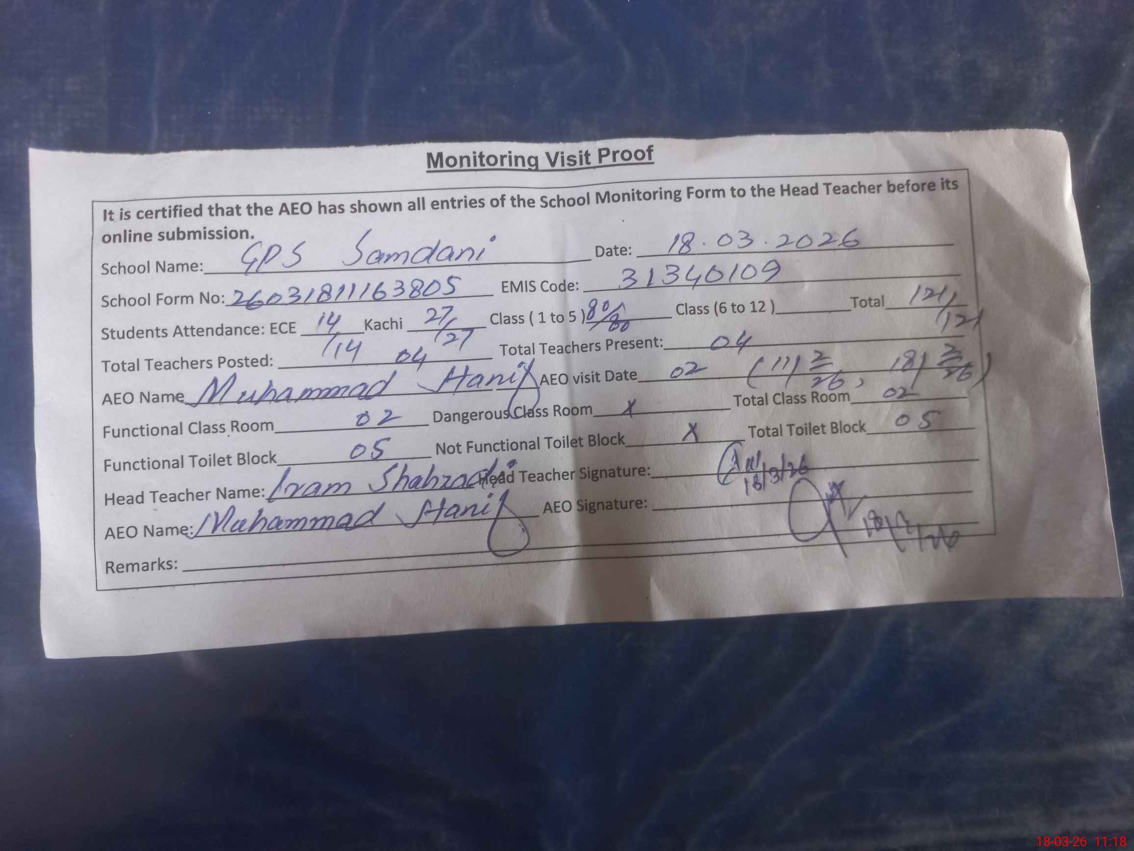 | EMIS Code: 31340109 | Name of School: GPS SAMDANEE | |||