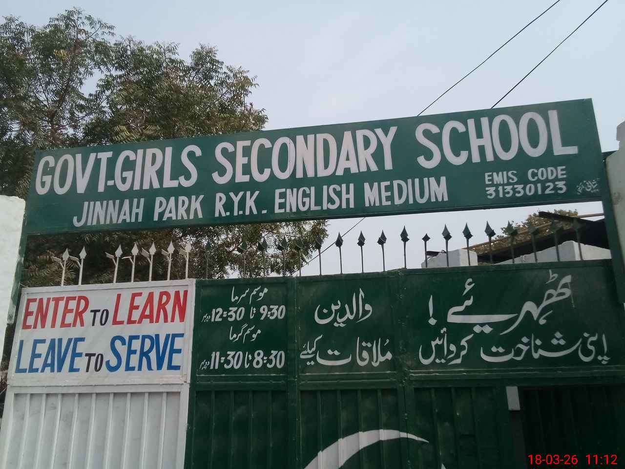 | EMIS Code: 31330123 | Name of School: GGHS JINNAH PARK R.Y. KHAN | |||