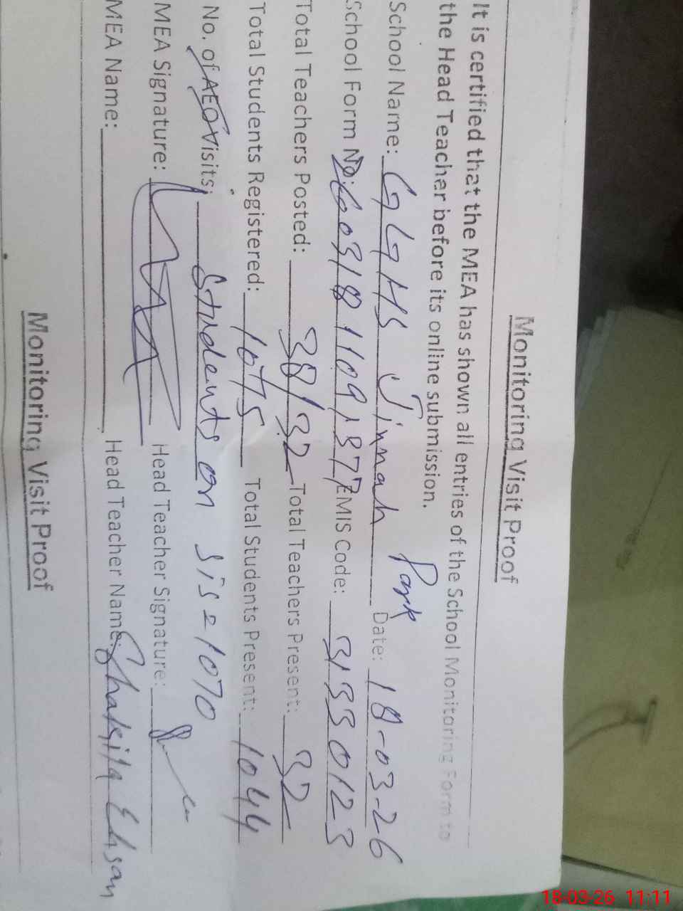 | Name: Sh**** Eh**** Designation: (School Headmaster's/Headmistress's) Inch Head Mistress Phone/Cell Number: 03**** |