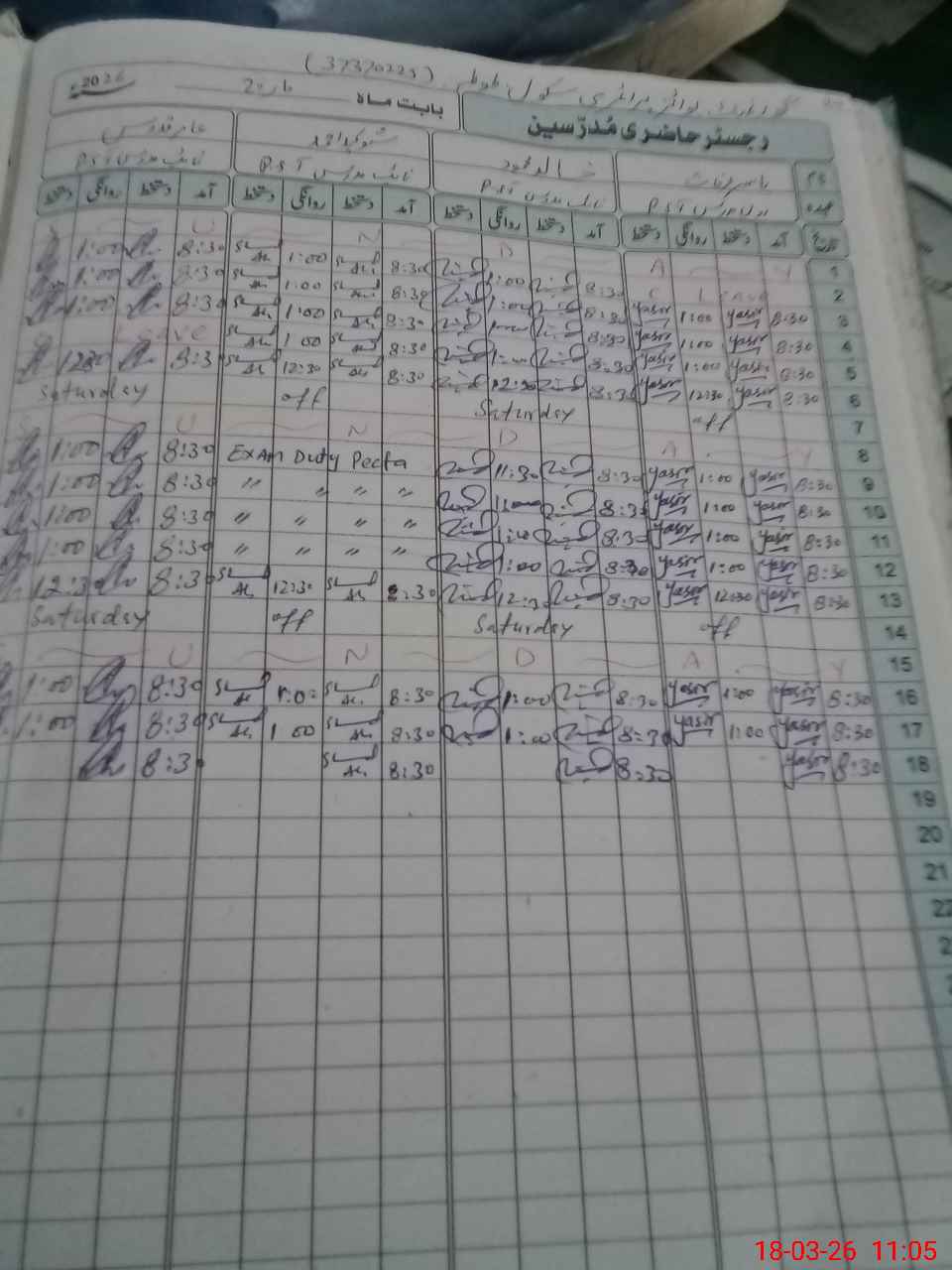 | Leave | Duty | Absent | Maternity | Medical | Ex- Pak |