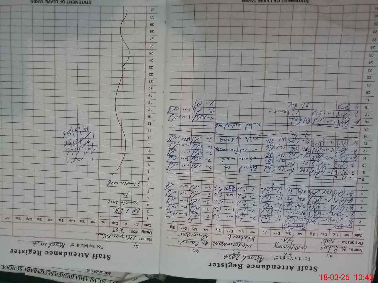 | Name: Ir**** Ha**** Designation: (School Headmaster's/Headmistress's) Principal Phone/Cell Number: 03**** |
