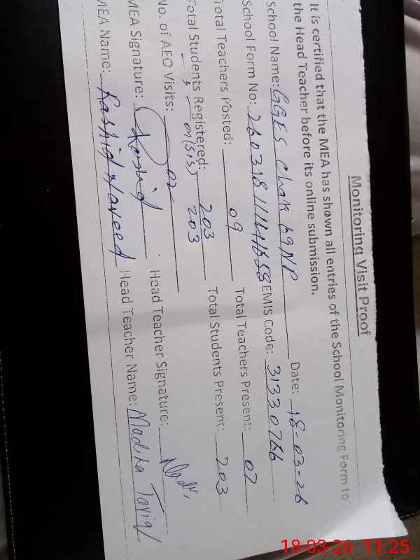 | EMIS Code: 31330766 | Name of School: GGES CHAK 69/NP | |||