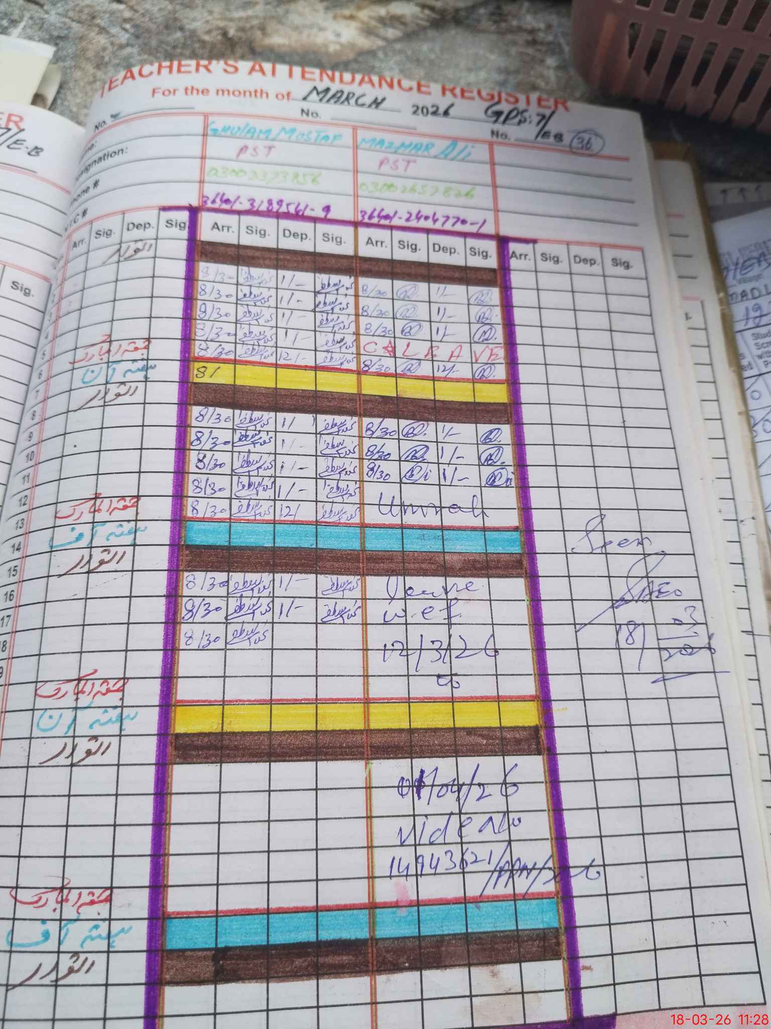 | Name: MU**** SH**** Designation: (School Headmaster's/Headmistress's) PST Phone/Cell Number: 03**** |
