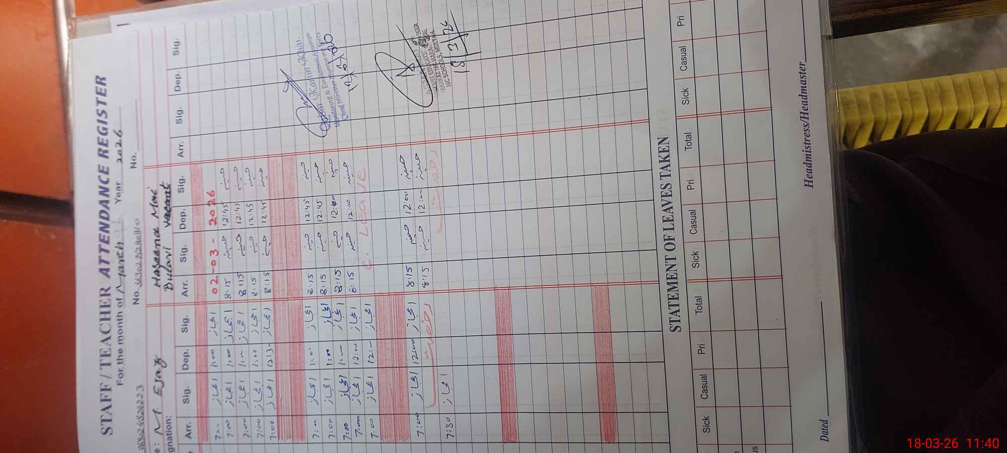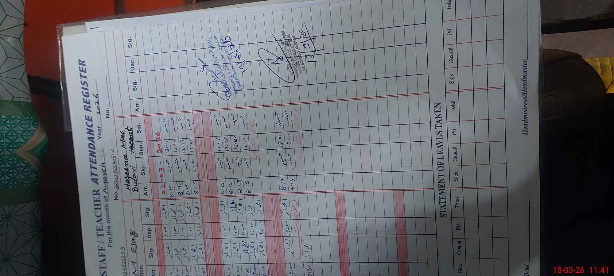 | Attendance Register | Head Teacher | MEA with School | Visit Proof |