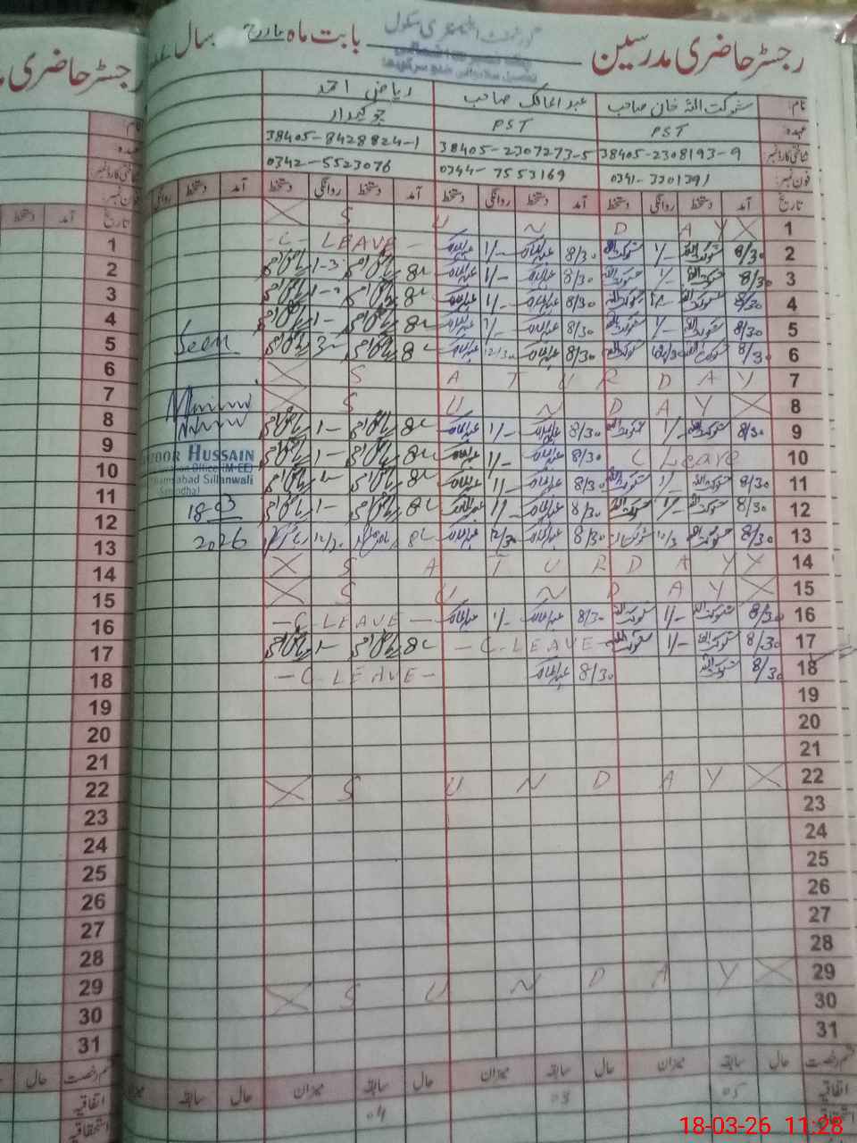 | Name: Ha**** MSh**** Iq**** Designation: (School Headmaster's/Headmistress's) S.S.T.(sci) Phone/Cell Number: 03**** |