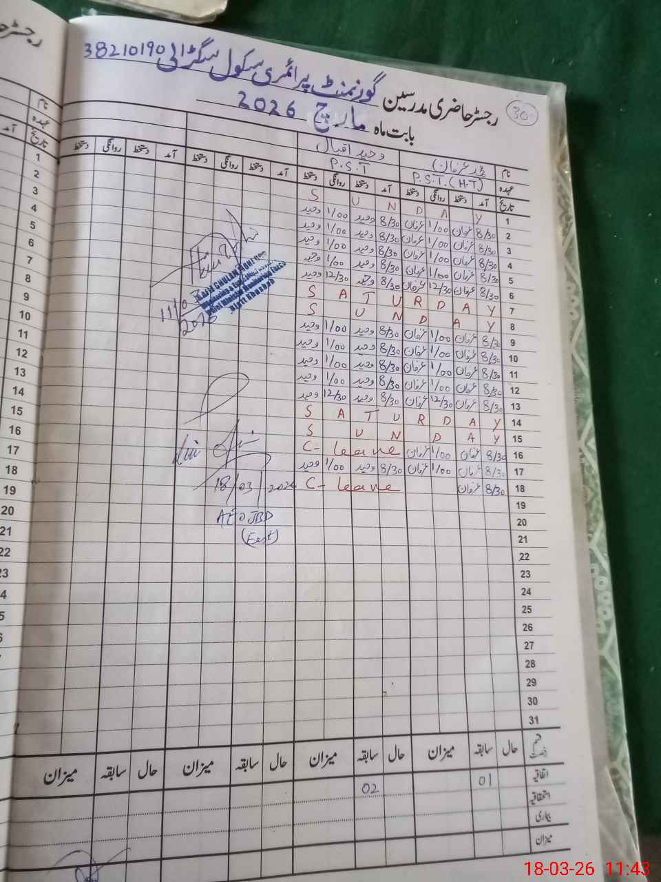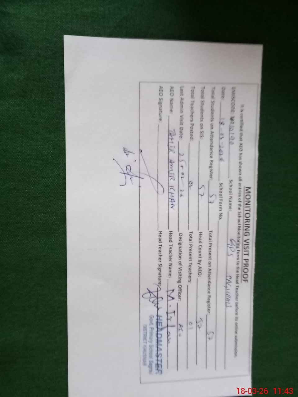 | Name: Mu**** Ir**** Designation: (School Headmaster's/Headmistress's) PST Phone/Cell Number: 03**** |