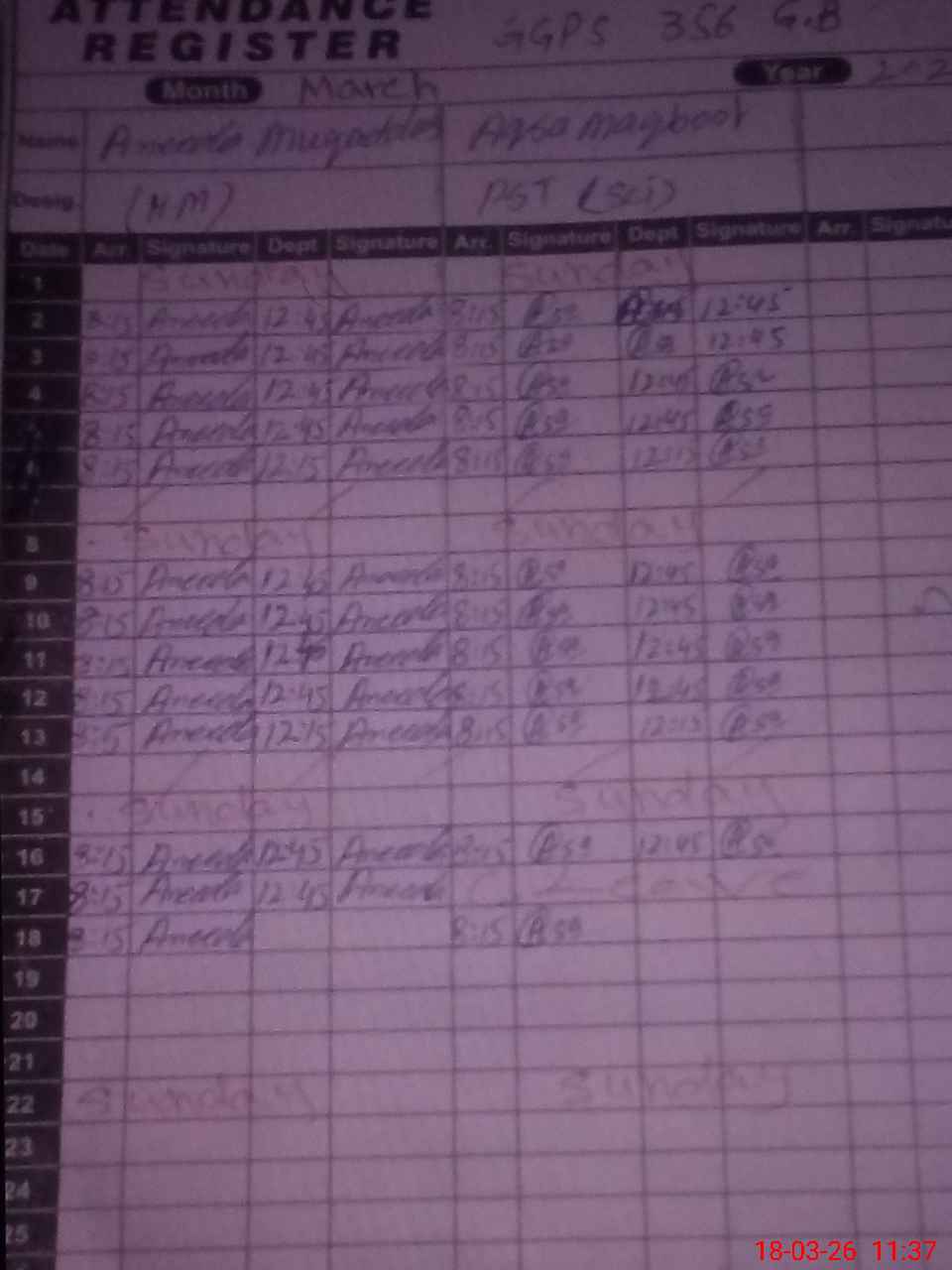 | Name: AN**** MU**** Designation: (School Headmaster's/Headmistress's) PST Phone/Cell Number: 03**** |