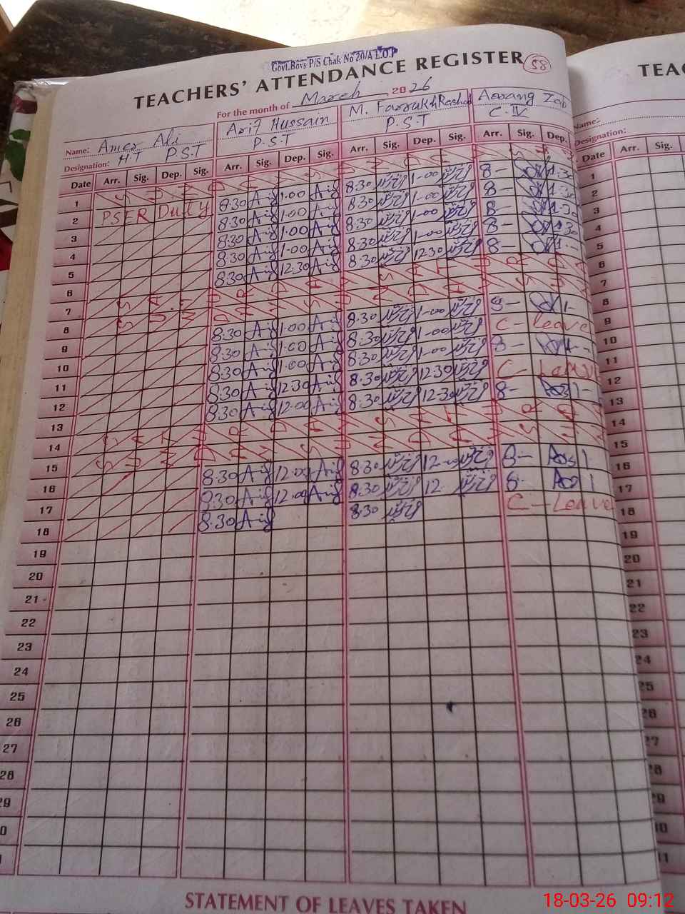 | Name: AM**** AL**** Designation: (School Headmaster's/Headmistress's) PST Phone/Cell Number: 03**** |
