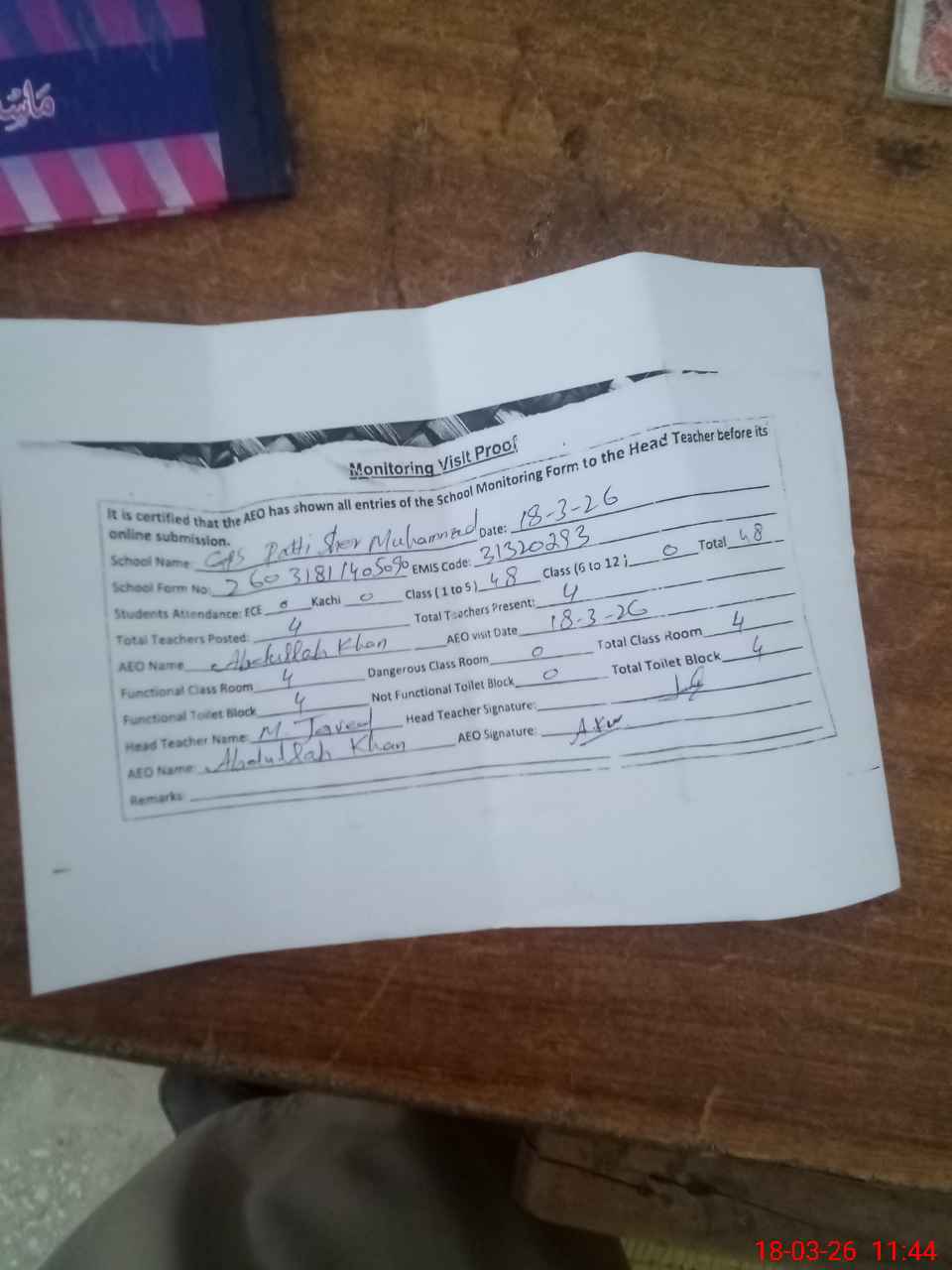| EMIS Code: 31320293 | Name of School: GPS PATI SEHR MUHAMMAD | |||