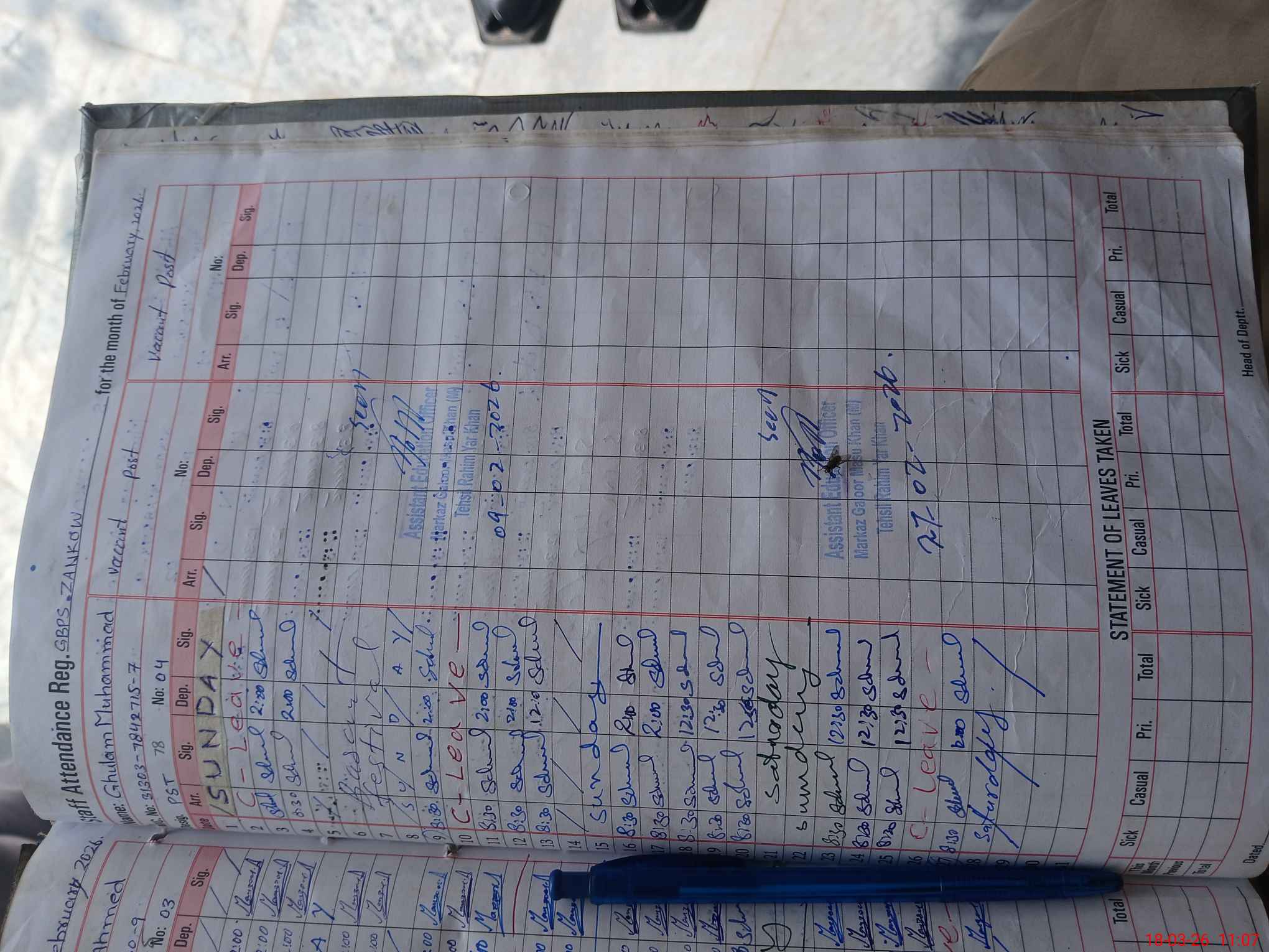 | Name: AB**** RA**** Designation: (School Headmaster's/Headmistress's) PST SC MATH Phone/Cell Number: 03**** |