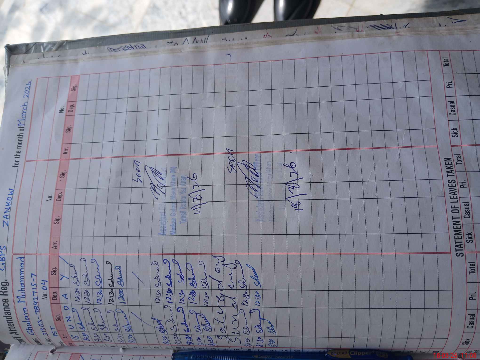 | Remarks (Use Separate Page if Required): Head on official duty. students not present due to petrol holidays | |||||