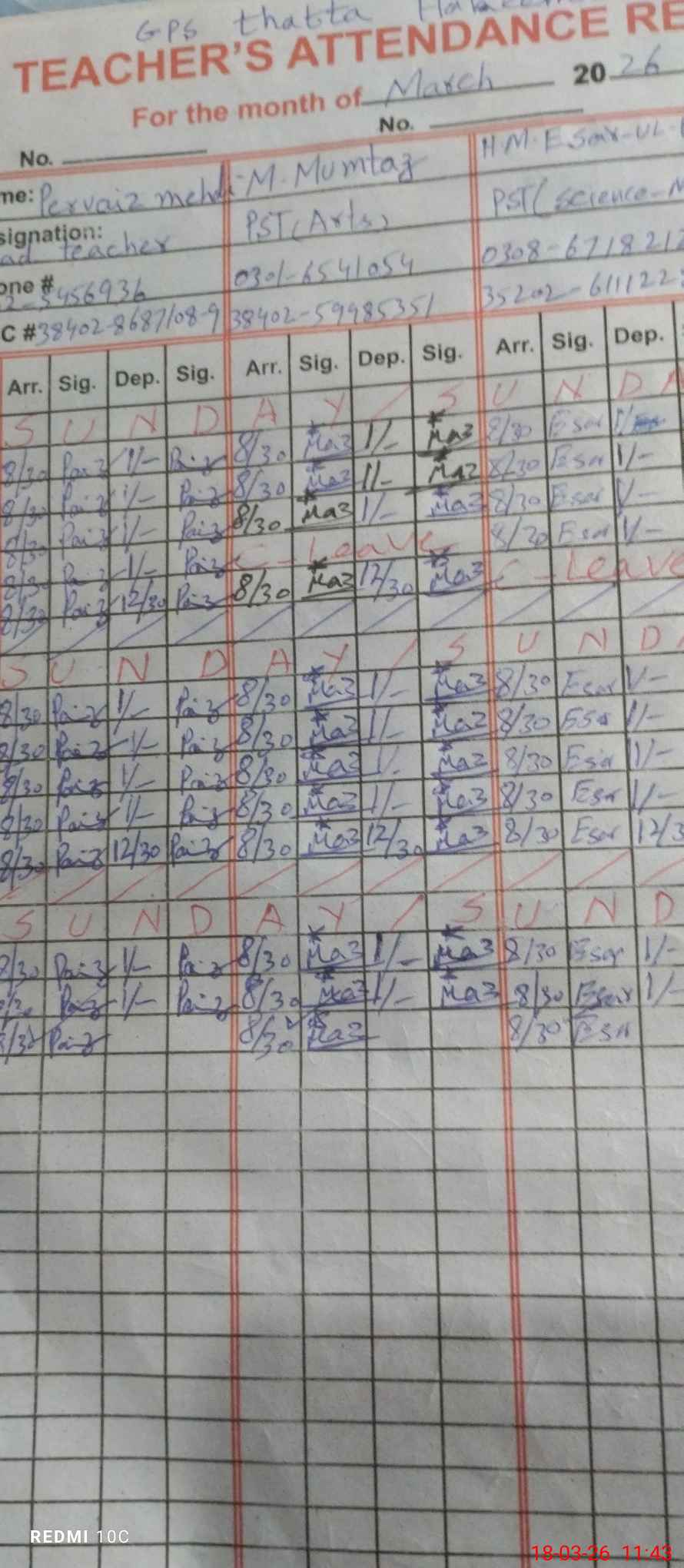 | EMIS Code: 38450237 | Name of School: GPS THATTA HAKEEMA | |||