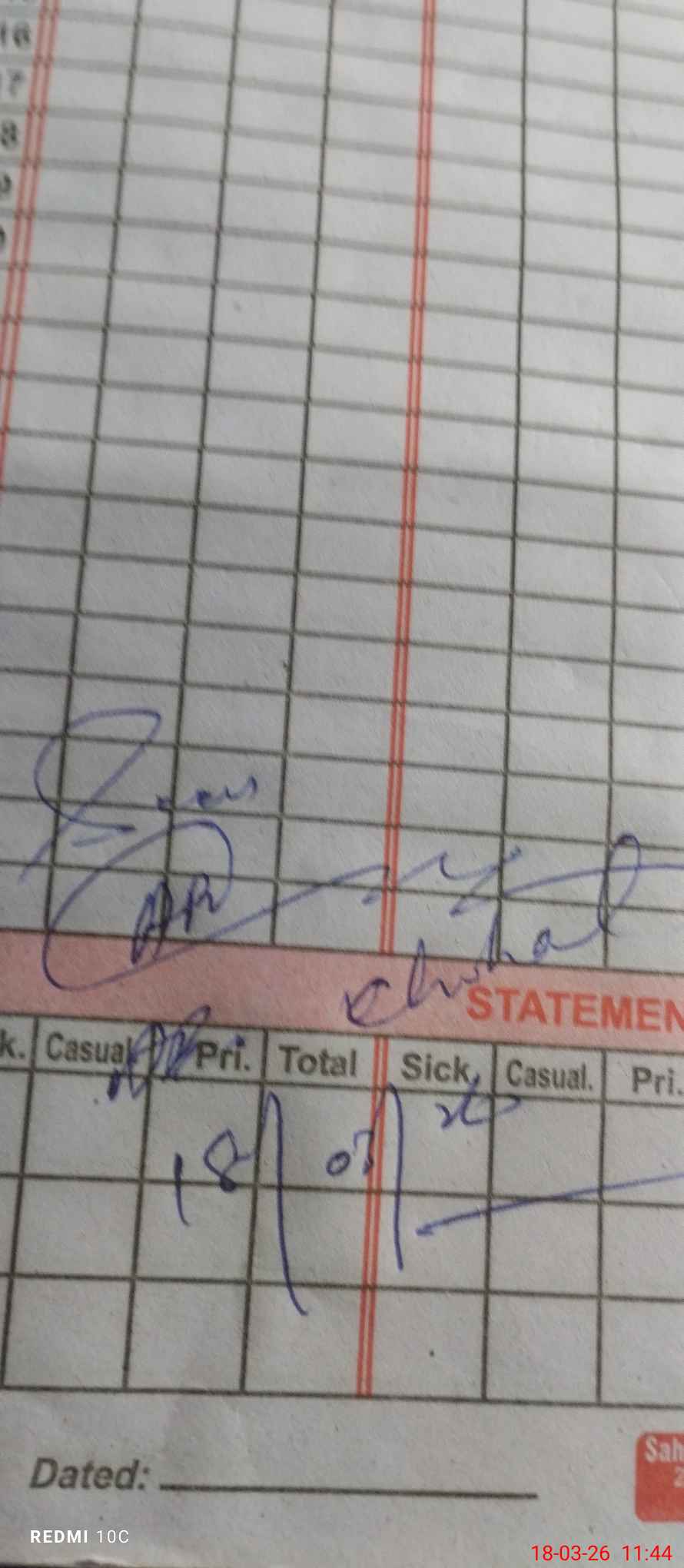 | Leave | Duty | Absent | Maternity | Medical | Ex- Pak |