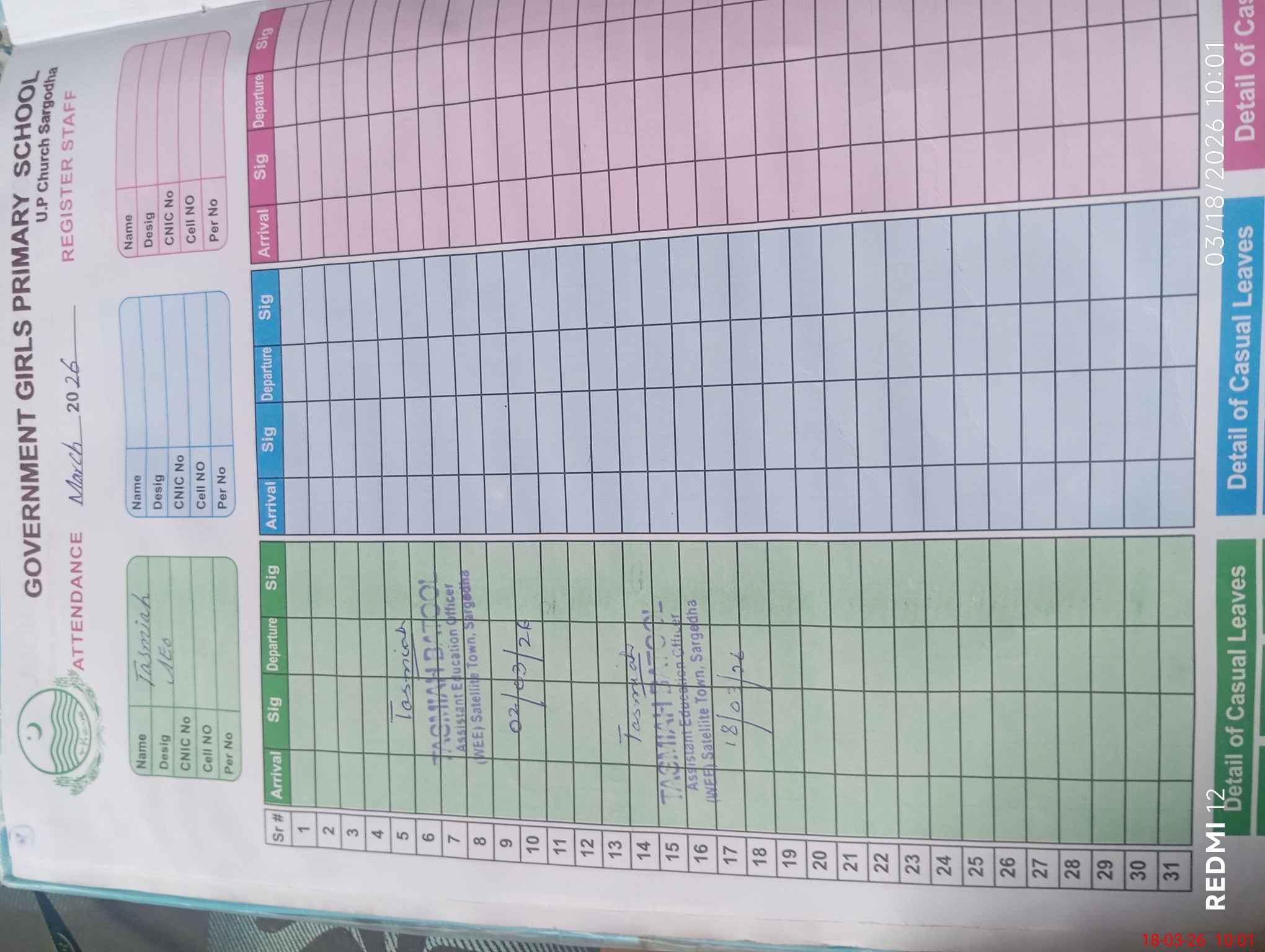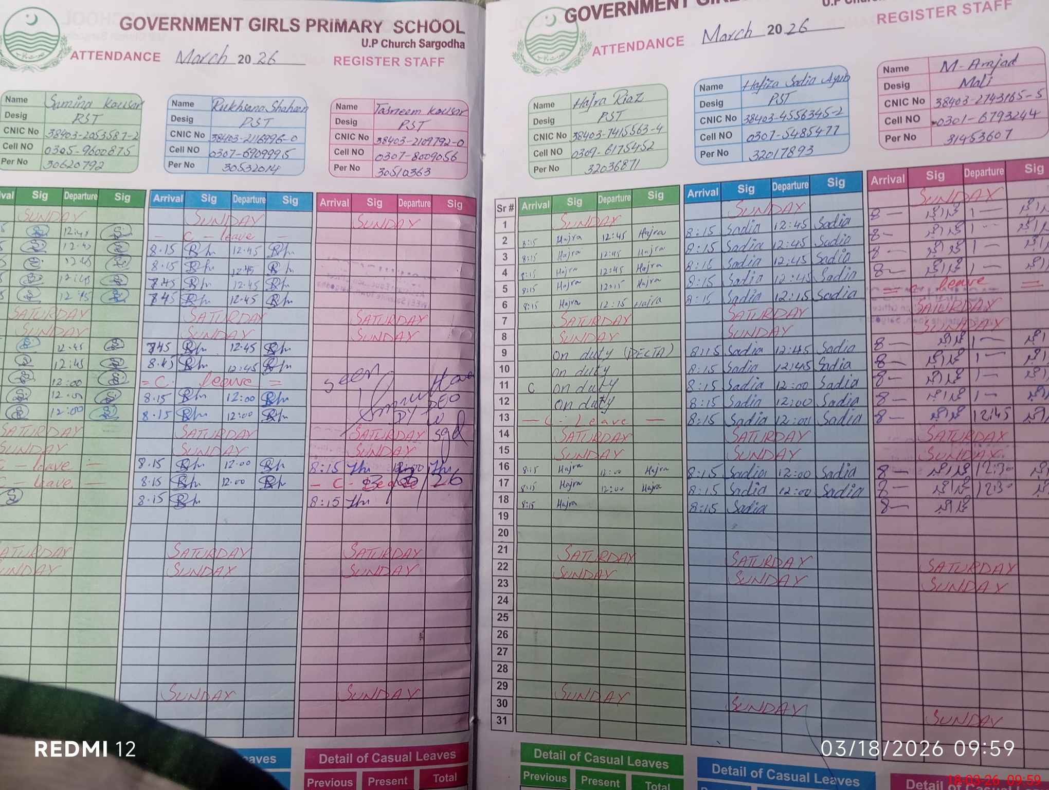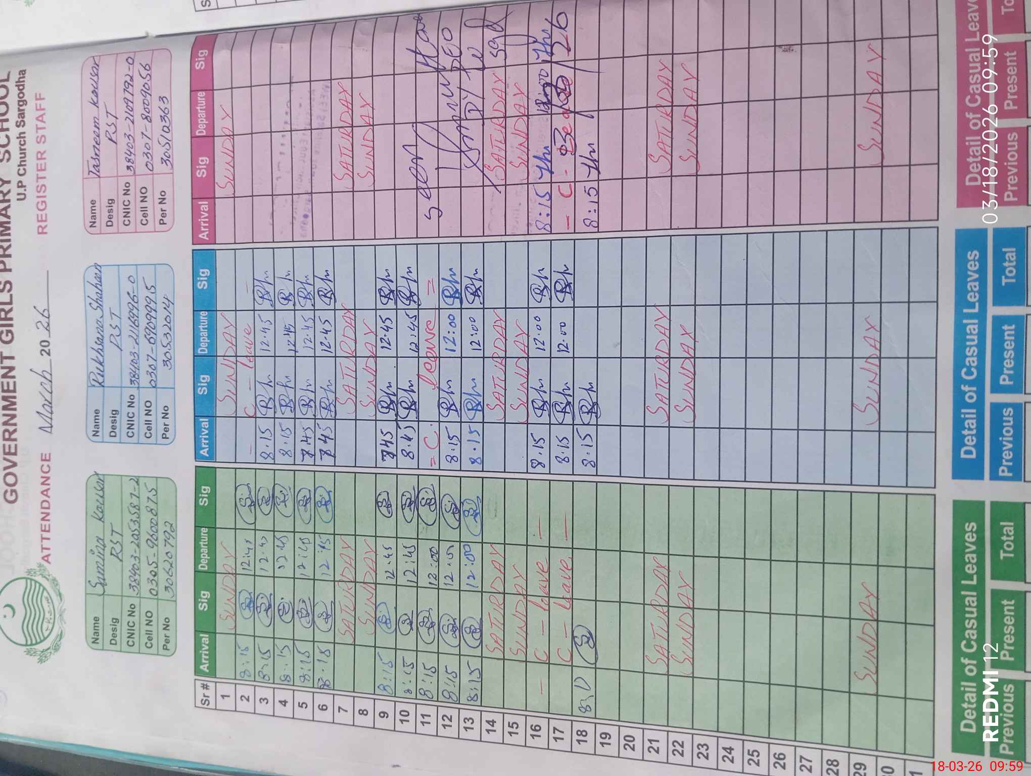 | CNIC | Full Name | Designation | R/C | Absence During Last Calender Month |