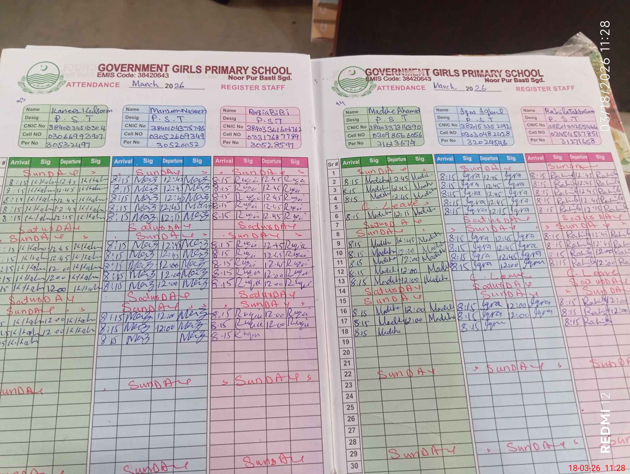 | CNIC | Full Name | Designation | R/C | Absence During Last Calender Month |