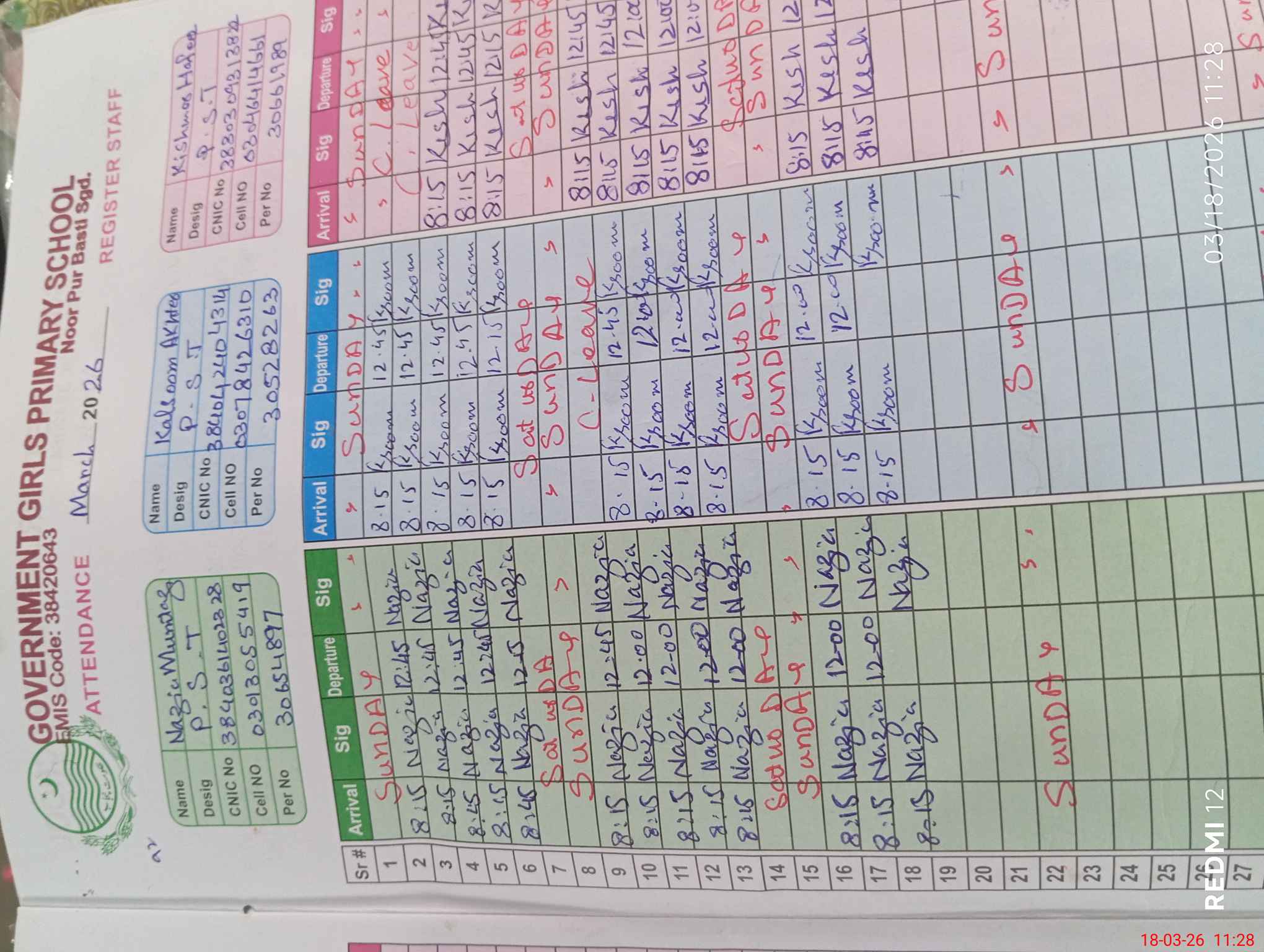 | Name: NA**** MU**** Designation: (School Headmaster's/Headmistress's) PST Phone/Cell Number: 03**** |