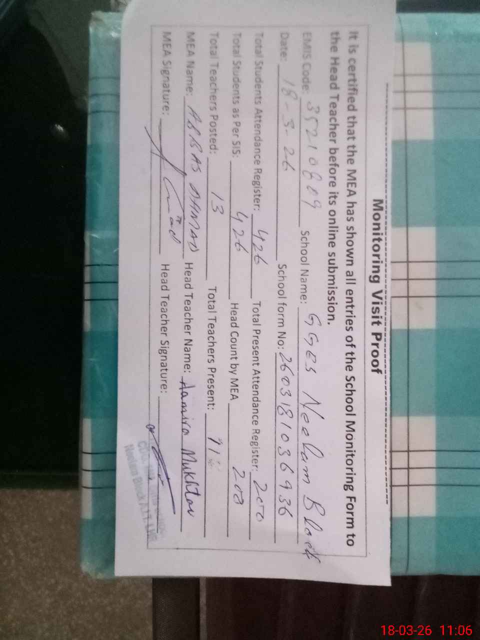 | EMIS Code: 35210809 | Name of School: GGES NEELAM BLOCK IQBAL TOWN (EX-MCL) | |||
