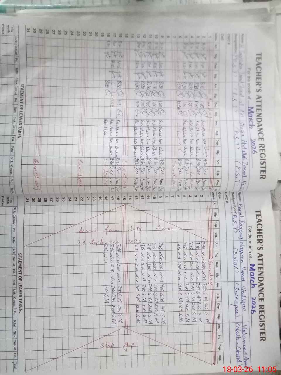 | 35**** | Ko**** Ra**** | PST Science/Maths | Regular | 0 | 0 | 28 | 0 | 0 | 0 | 0 | 0 | 0 | Absent (Un-Authorized) |
