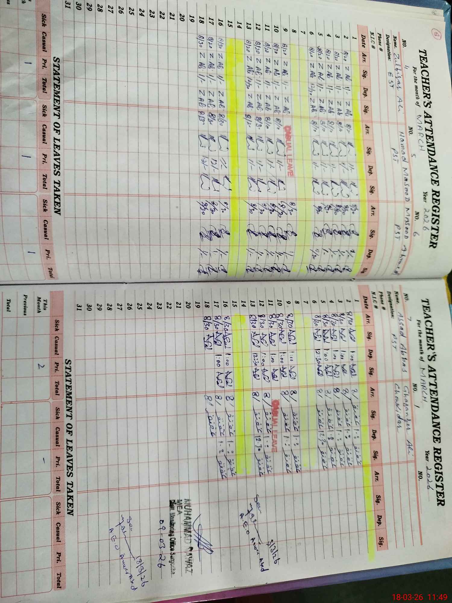 | CNIC | Full Name | Designation | R/C | Absence During Last Calender Month |