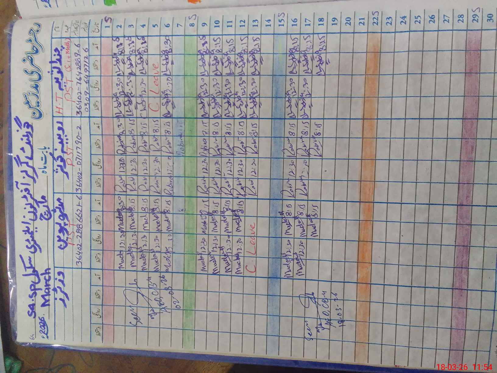 | Name: Ch**** So**** Designation: (School Headmaster's/Headmistress's) PST Phone/Cell Number: 03**** |
