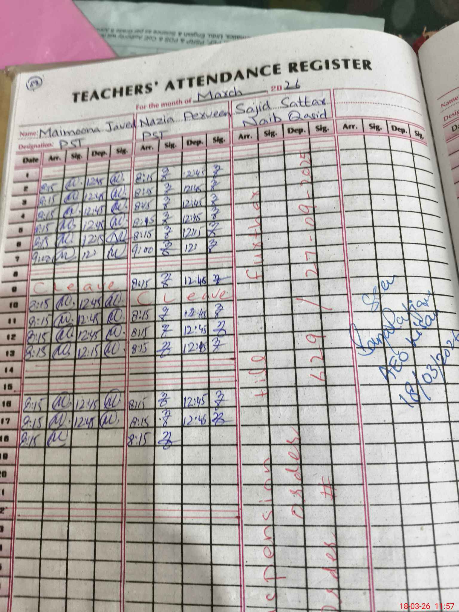 | 36**** | Na**** Ak**** | PST Science/Maths | Regular | 0 | 0 | 0 | 0 | 0 | 0 | 0 | 0 | 0 | Maternity |
