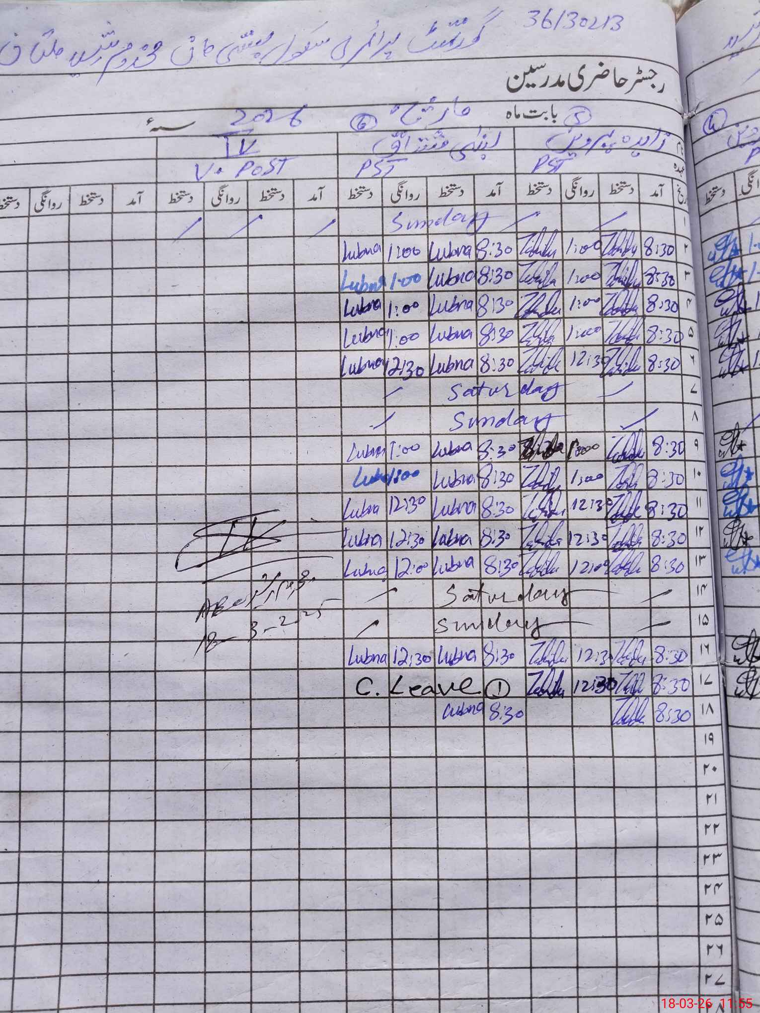 | Name: UM**** Ha**** Designation: (School Headmaster's/Headmistress's) PST/PTC/JV Phone/Cell Number: 03**** |