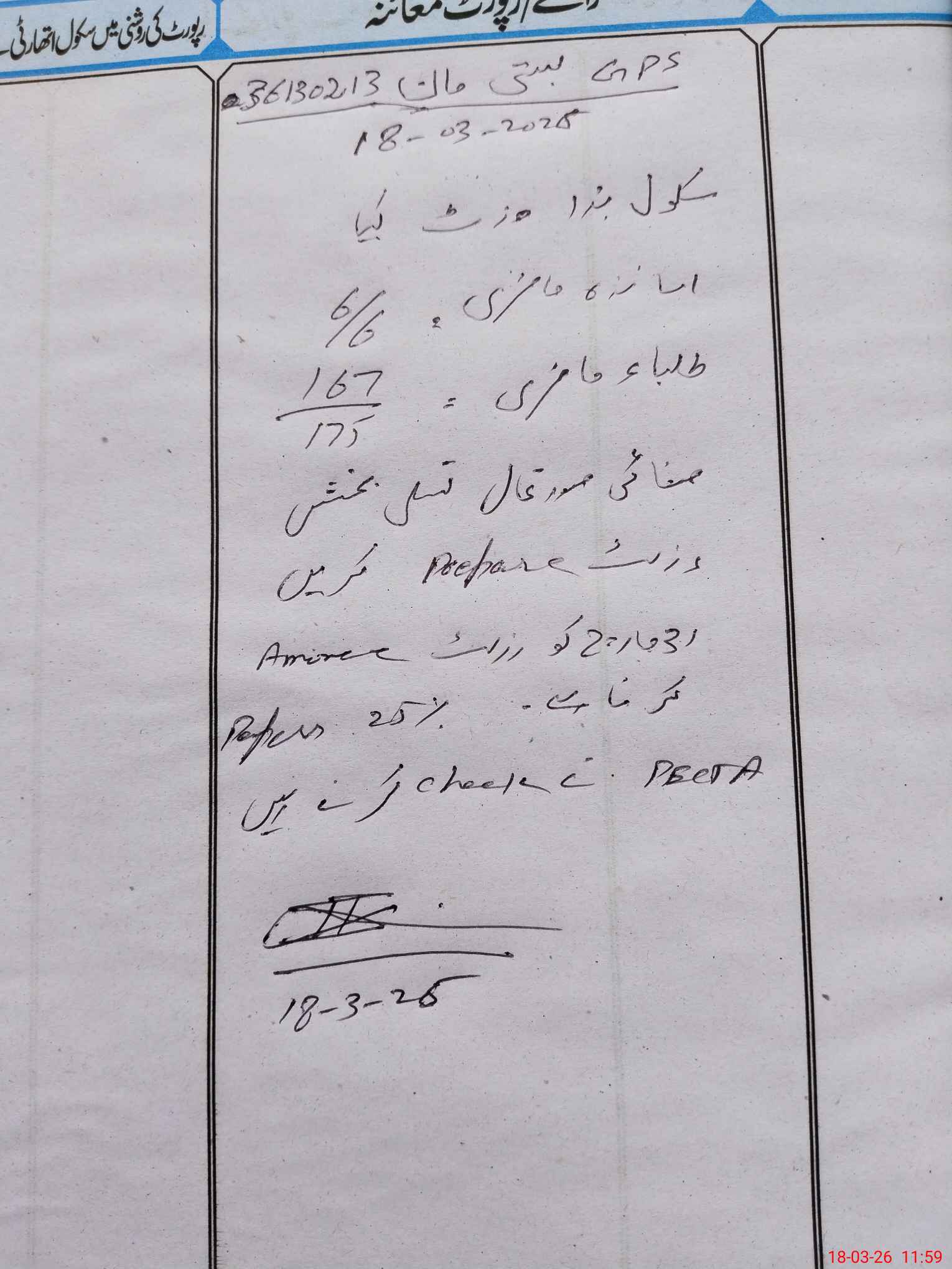 | Certified that this School was Inspected by the Undersigned MEA/DMO Today and the Information Stated Above is as Per Record. | |||||