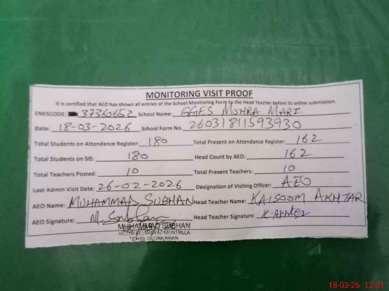 | EMIS Code: 37360652 | Name of School: GGES MOHRA MARI | |||