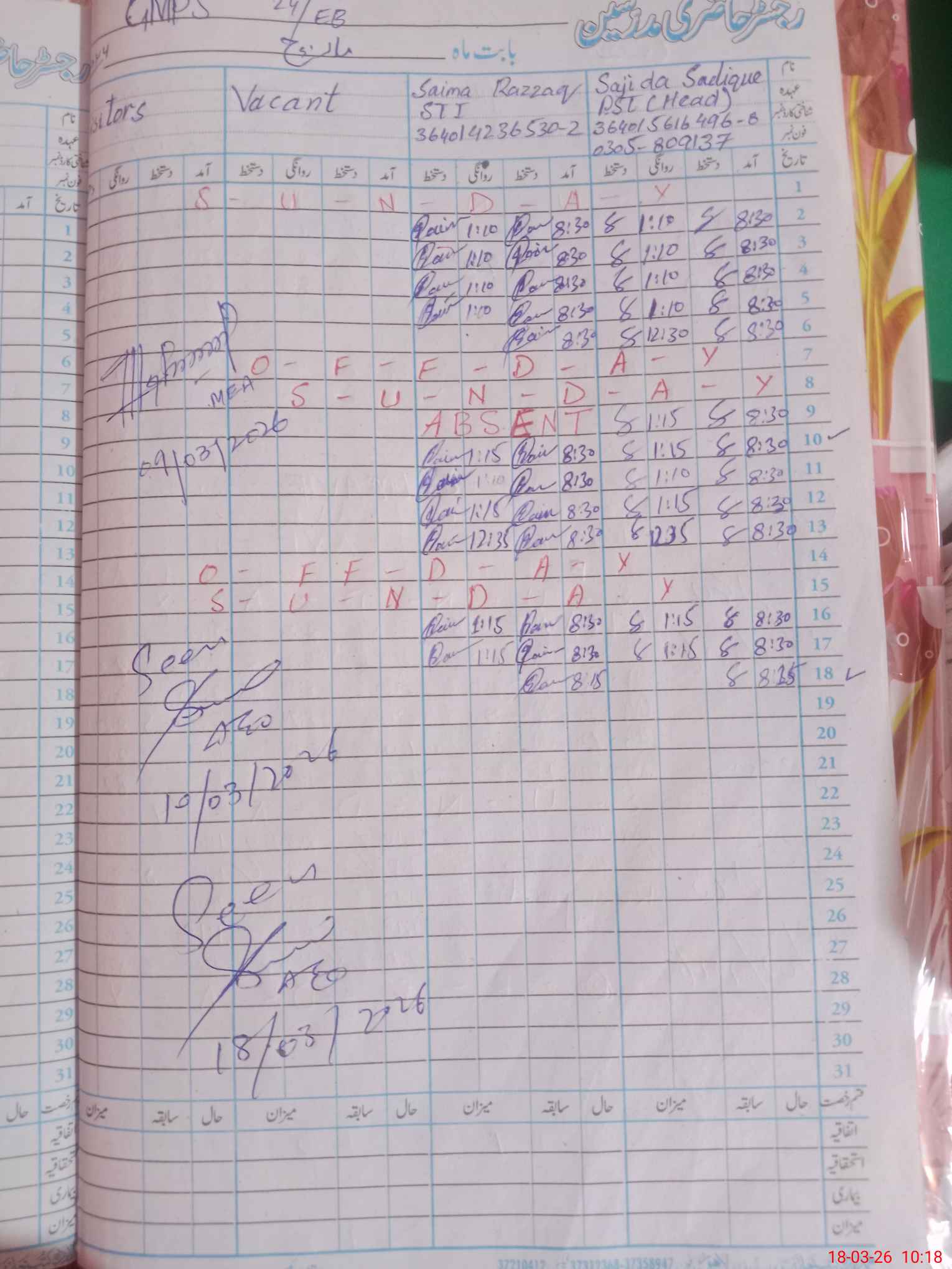 | Name: SA**** SA**** Designation: (School Headmaster's/Headmistress's) PST Phone/Cell Number: 03**** |