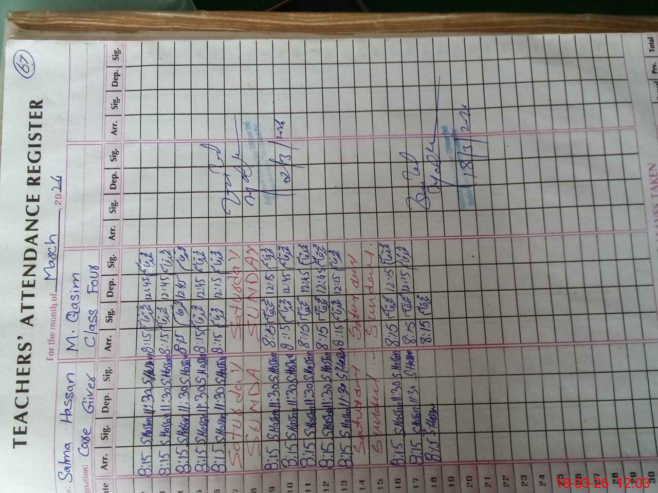 | CNIC | Full Name | Designation | R/C | Absence During Last Calender Month |