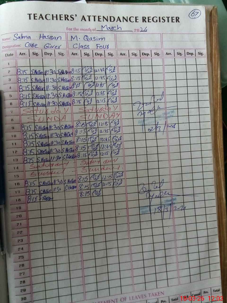 | Attendance Register | Head Teacher | MEA with School | Visit Proof |