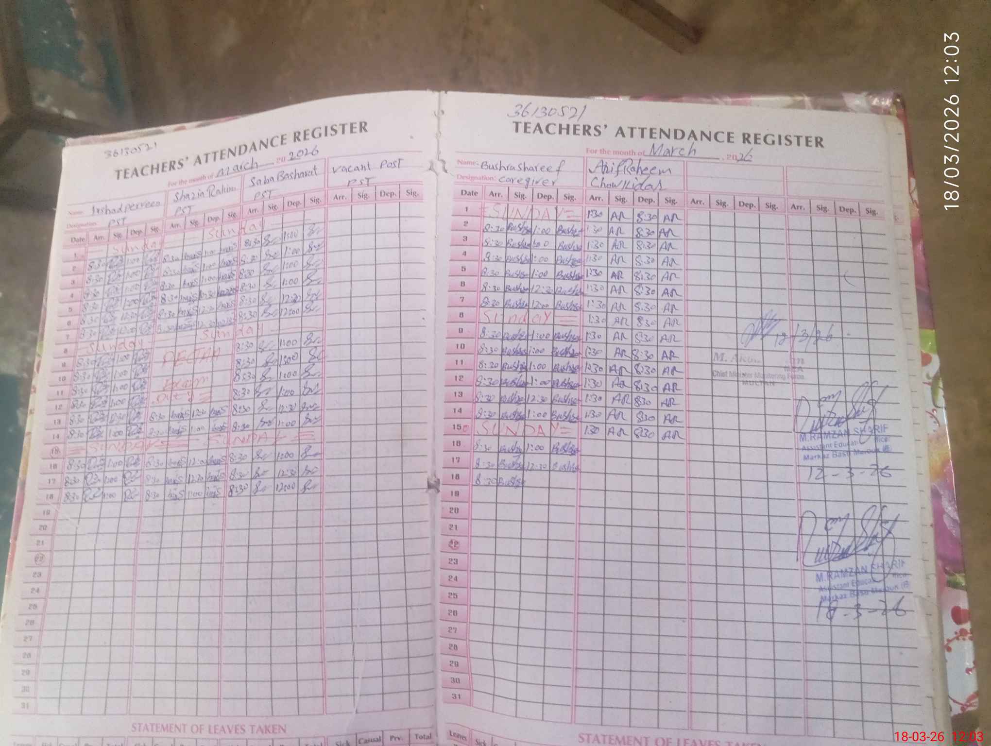 | Attendance Register | Head Teacher | MEA with School | Visit Proof |