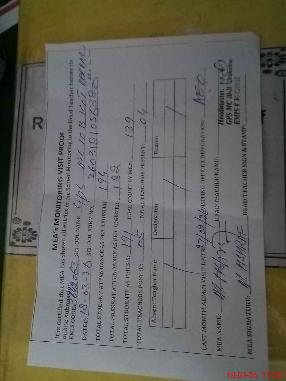 | EMIS Code: 36420631 | Name of School: GPS MC 10-B KOT BERBAL KHANEWAL | |||
