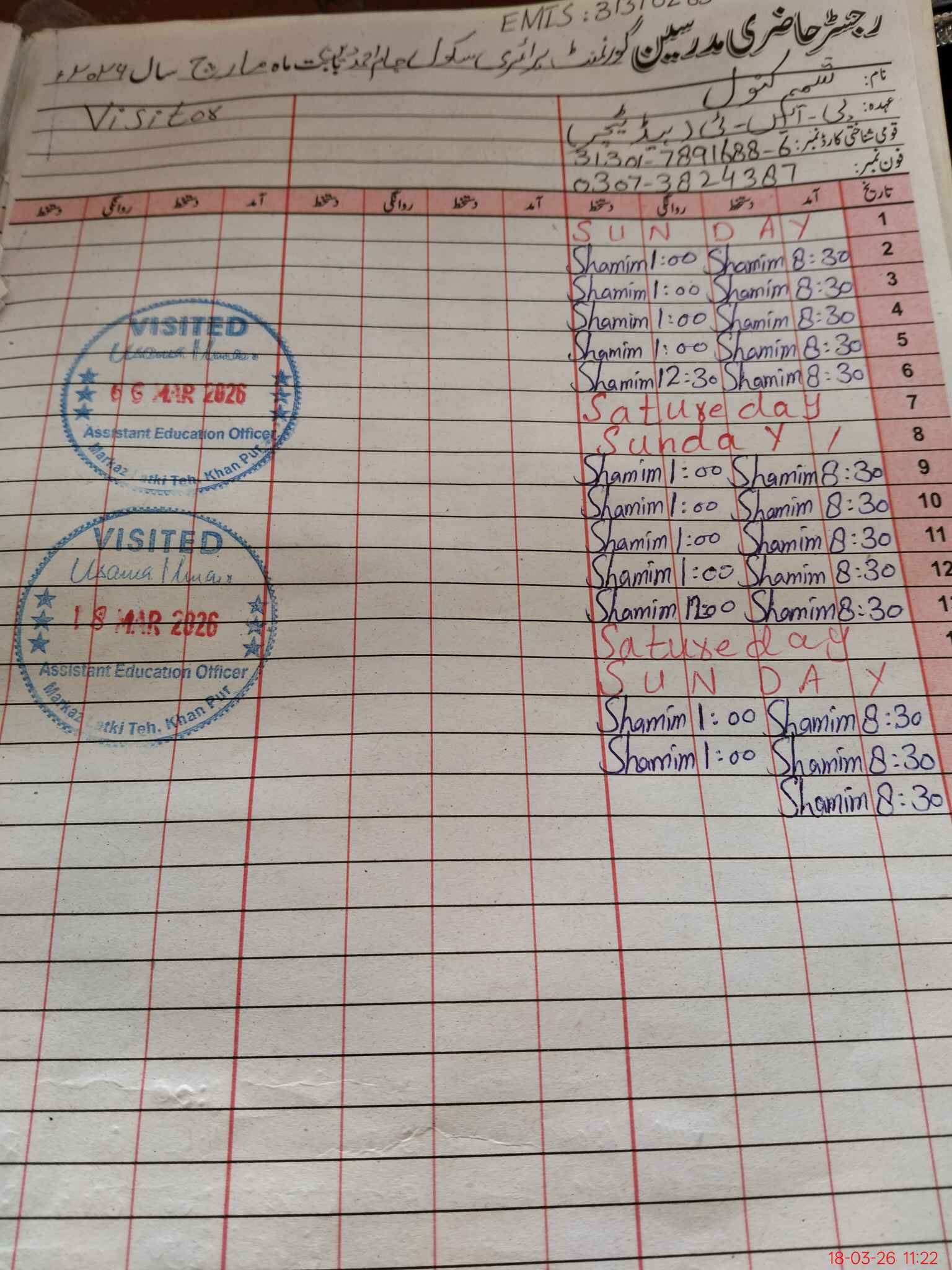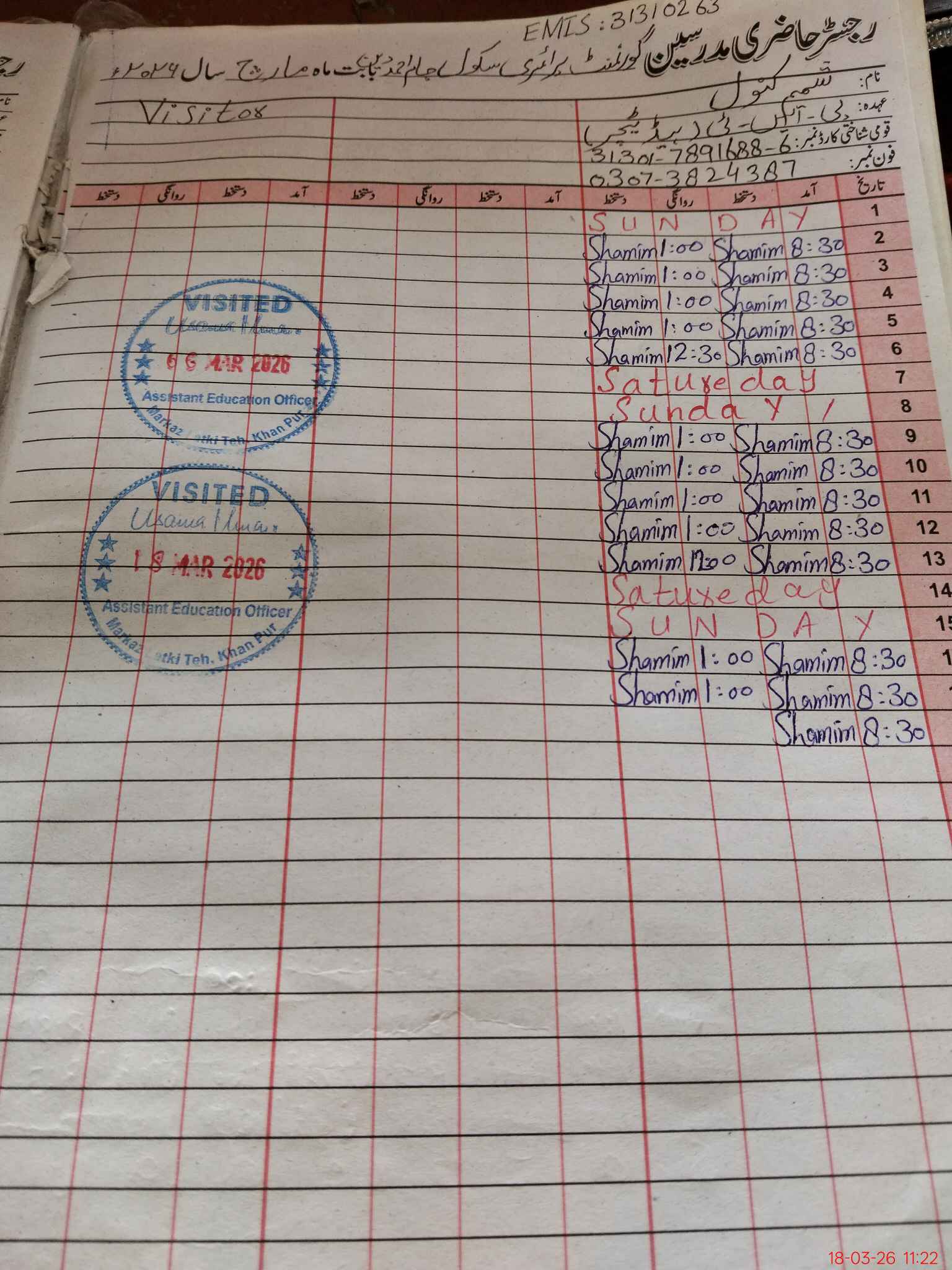 | Name: NA**** AH**** Designation: (School Headmaster's/Headmistress's) PST Phone/Cell Number: 03**** |