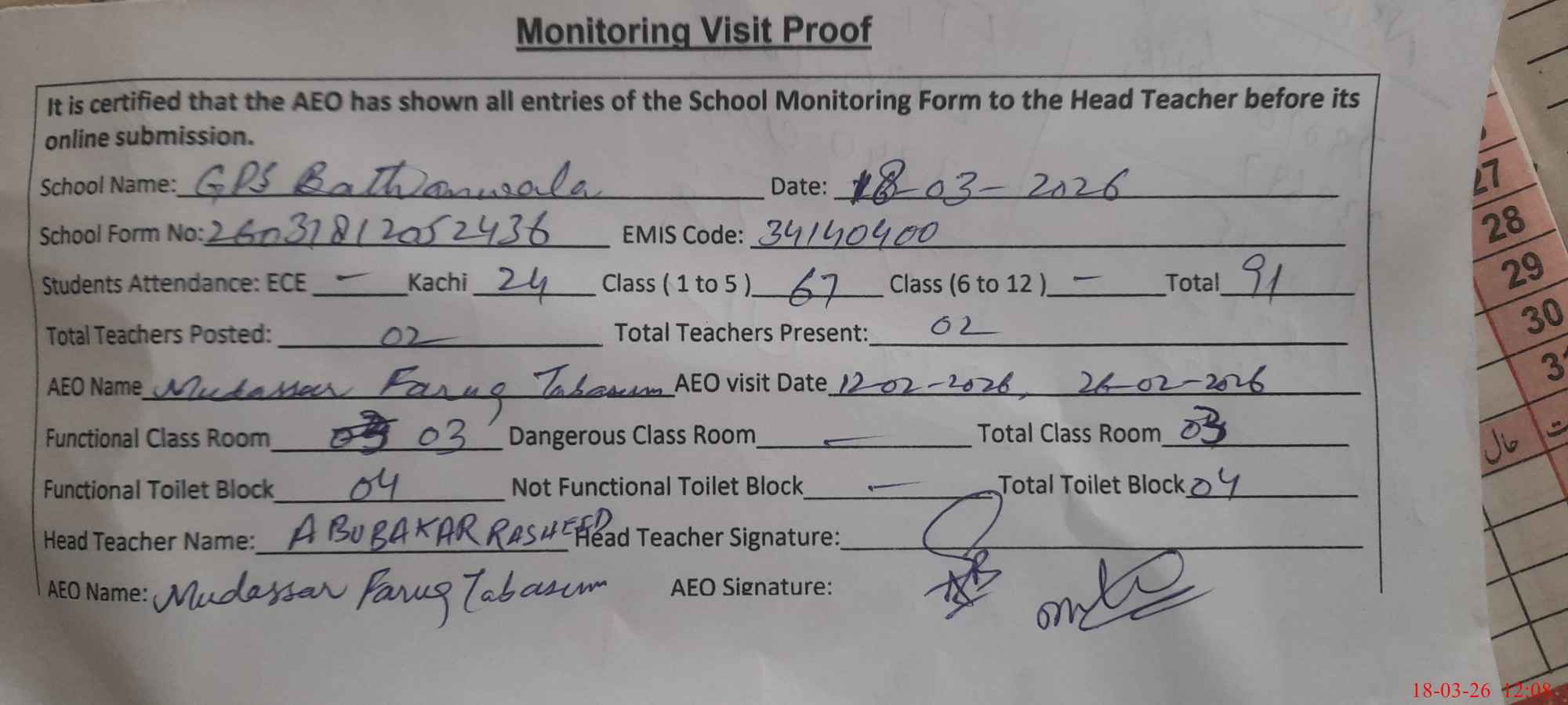 | EMIS Code: 34140400 | Name of School: GPS BATHAN WALA | |||