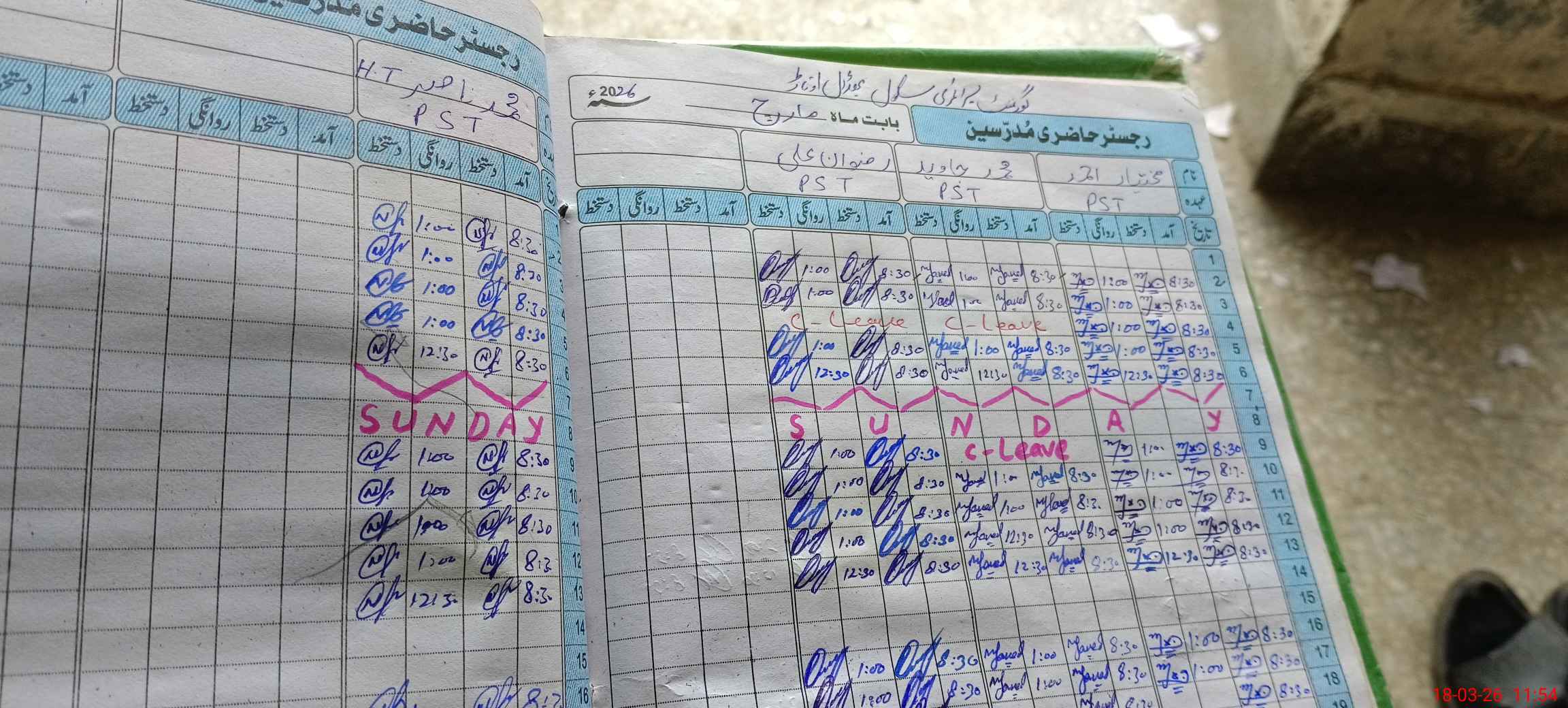 | Leave | Duty | Absent | Maternity | Medical | Ex- Pak |