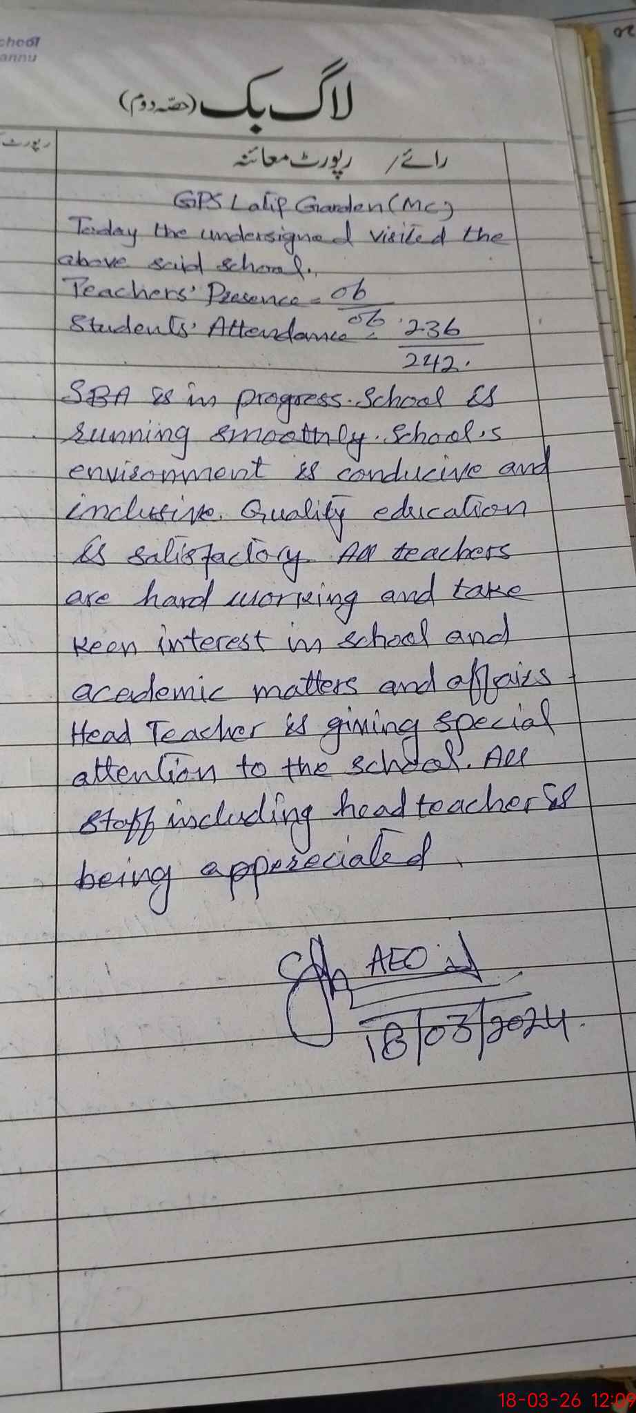 | Certified that this School was Inspected by the Undersigned MEA/DMO Today and the Information Stated Above is as Per Record. | |||||