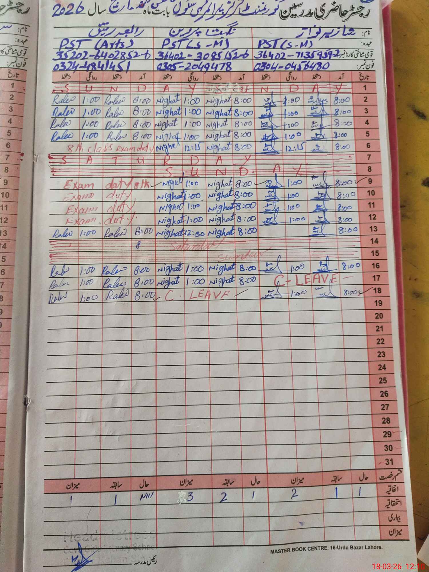 | 36**** | Ni**** Pe**** | PST Science/Maths | Regular | 0 | 0 | 0 | 0 | 0 | 0 | 0 | 0 | 0 | Casual |