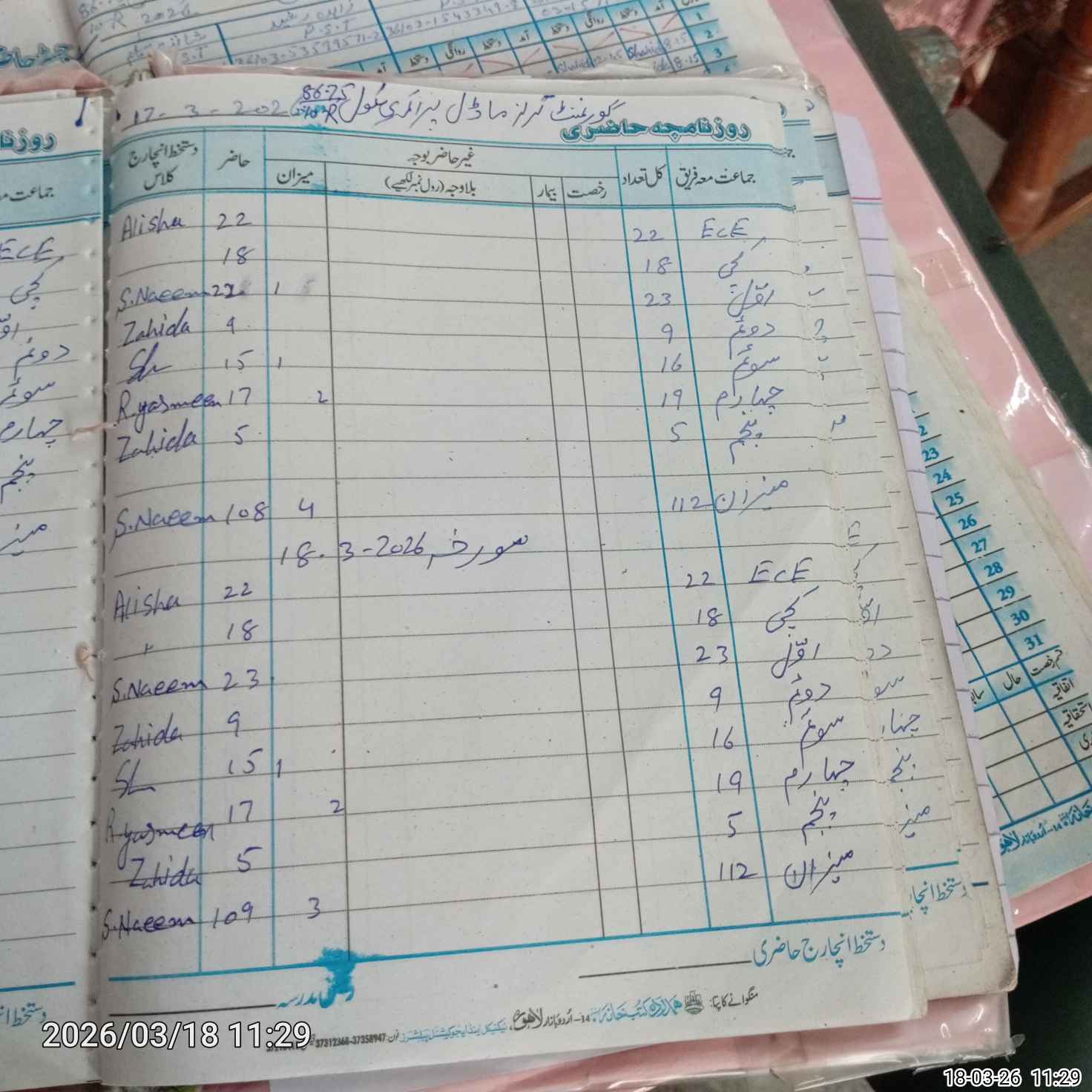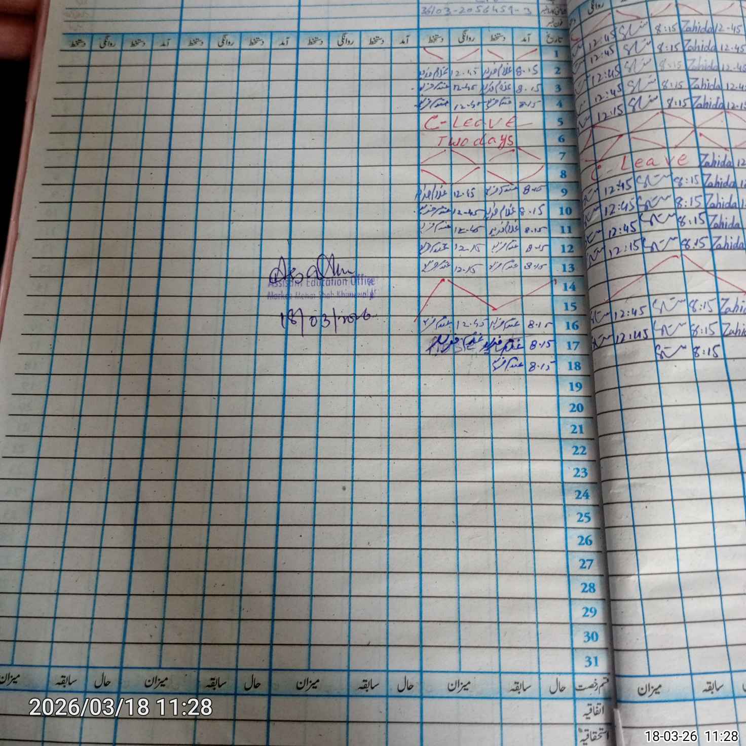 | CNIC | Full Name | Designation | R/C | Absence During Last Calender Month |