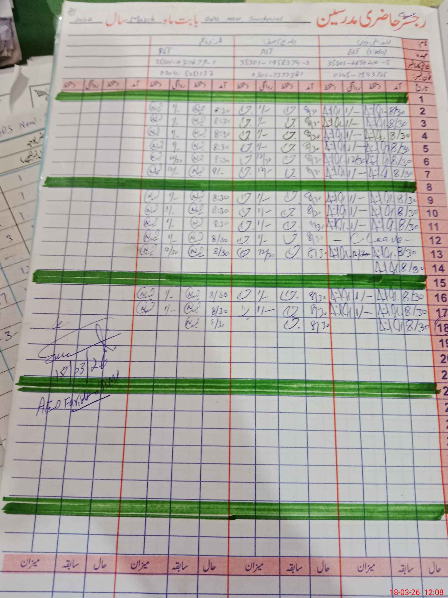 | Name: Mu**** Na**** Designation: (School Headmaster's/Headmistress's) PST Phone/Cell Number: 03**** |